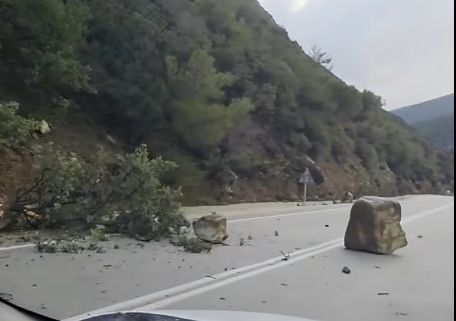 Χανιά | Κατολίσθηση με μεγάλο βράχο να πέφτει στη μέση του δρόμου | Βίντεο