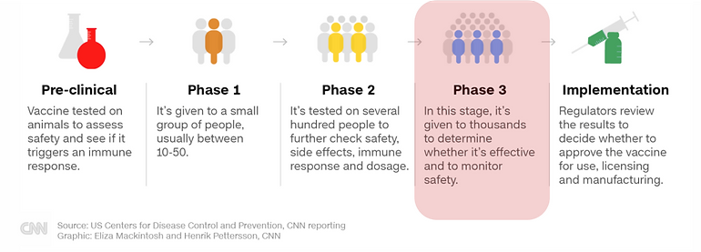 Προκειμένου να χορηγηθεί επείγουσα άδεια σε ένα εμβόλιο, απαιτούνται συγκεκριμένα δεδομένα από τις κλινικές δοκιμές φάσης ΙΙΙ για την αποτελεσματικότητα και ασφάλειά του.