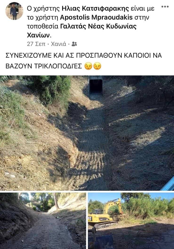 Οι αρμόδιες υπηρεσίες της Π.Ε. Χανίων, γνωρίζουν, έχουν λάβει γνώση της κατάστασης που επικρατεί, χωρίς ωστόσο να έχουν παρέμβει.
