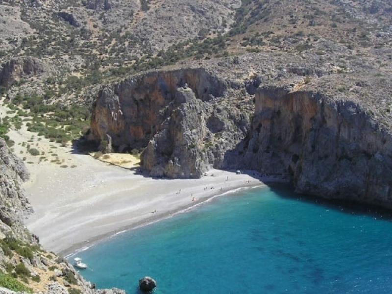 Το ιδιαίτερο όνομα, εντωμεταξύ, οφείλεται στο επιβλητικό «Φαράγγι των Αγίων» το οποίο καταλήγει εκεί, καθώς στο παρελθόν υπήρξε αγαπημένος προορισμός για όσους θέλησαν να δοκιμάσουν την πίστη τους, γενόμενοι ασκητές και ερημίτες. Η διαδρομή μέσα από αυτό προσθέτει στη μοναδικότητα της εμπειρίας που μπορείτε να ζήσετε ερχόμενοι εδώ, κάνοντας την ακτή να δείχνει ακόμα πιο ειδυλλιακή.
