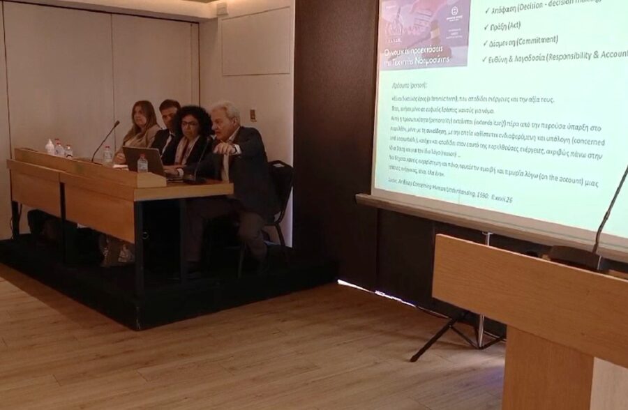 Σε αυτήν την πορεία τι κάνουμε; Δεσμευόμαστε, είμαστε φορείς δεσμεύσεων και αυτό απεικονίζεται στο ότι είμαστε φορείς ευθύνης και υποκείμεθα σε λογοδοσία. Αυτό είναι το γενικό πλαίσιο. Αυτό δεν αλλάζει, ότι και αν αποθέσουμε ως εργαλείο στο περιβάλλον. Το να αποθέτουμε μηχανισμούς νόησης στο περιβάλλον πράγματι συνιστά μια κρίσιμη και δραματική αλλαγή.»