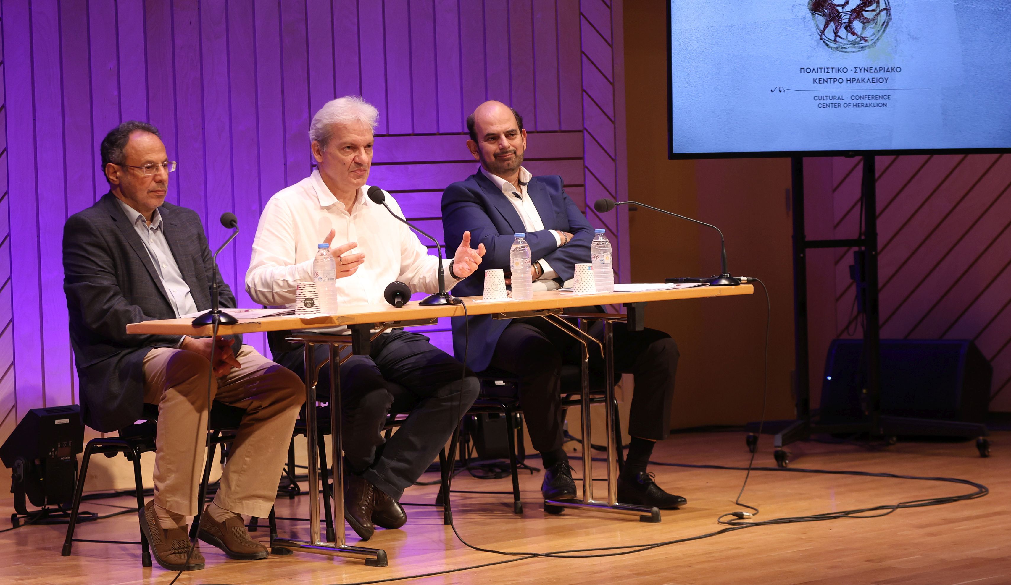 Θέλω να ευχαριστήσω το Σύλλογο Φίλων του Πολιτιστικού, την Μαρία Λεμπιδάκη και την Μαρία Φιλιππάκη που βρίσκονται εδώ, τον Μιχάλη Ταρουδάκη, ο οποίος συμβάλει πλέον από το Διοικητικό Συμβούλιο και νομίζω ότι η ένωση αυτών των δυνάμεων θα συντελέσει στην επιτυχία ενός αποτελέσματος που το αξίζουμε. Το αξίζει η πόλη, το αξίζει το Ηράκλειο και το δικαιολογεί το δυναμικό αυτής της μεγάλης υποδομής και της παράδοσης η οποία επετεύχθη να δημιουργηθεί ως εδώ. Από εδώ και πέρα, θα είμαστε ακόμα καλύτερα.