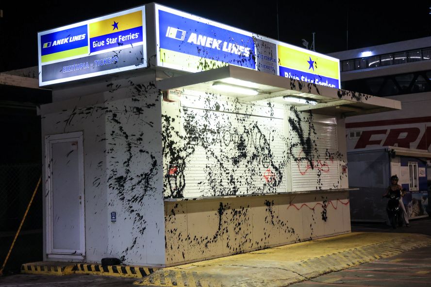 Οι διαδηλωτές φώναζαν συνθήματα για τον αδικοχαμένο νέο την ώρα που ο κόσμος επιβιβαζόταν στο πλοίο, ενώ κάποιοι από αυτούς πέταξαν μπογιές στα εκδοτήρια εισιτηρίων της ΑΝΕΚ.