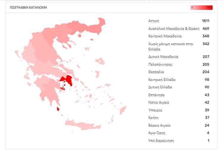 Σύμφωνα πάντα με τα στοιχεία της ημερήσιας επισκόπησης του ΕΟΔΥ