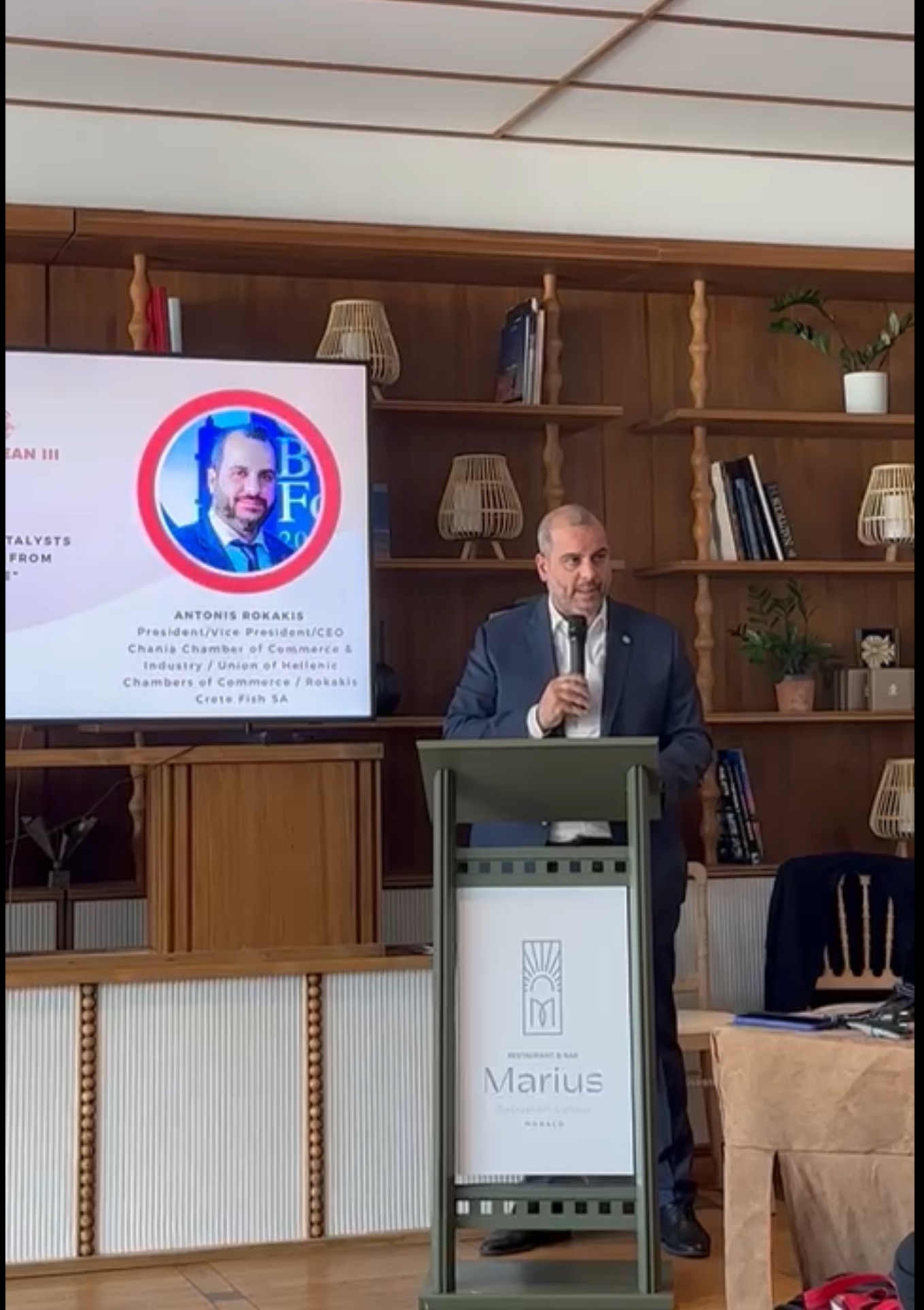 Ο Επιχειρηματικός κόσμος της Ελλάδας εκπροσωπήθηκε ενεργά στις εργασίες της σημαντικής στρατηγικής πρωτοβουλίας για την Αειφόρο Γαλάζια Ανάπτυξη του θαλάσσιου πλούτου της Μεσογείου από τον Πρόεδρο του Επιμελητηρίου Χανίων και Αντιπρόεδρο της Κεντρικής Ένωσης Επιμελητηρίων Ελλάδος, κ. Αντώνη Ροκάκη, ο οποίος επαγγελματικά δραστηριοποιείται διεθνώς και πολυδιάστατα στον κλάδο της Αλιείας (σε εμπορικό και αλιευτικό επίπεδο).