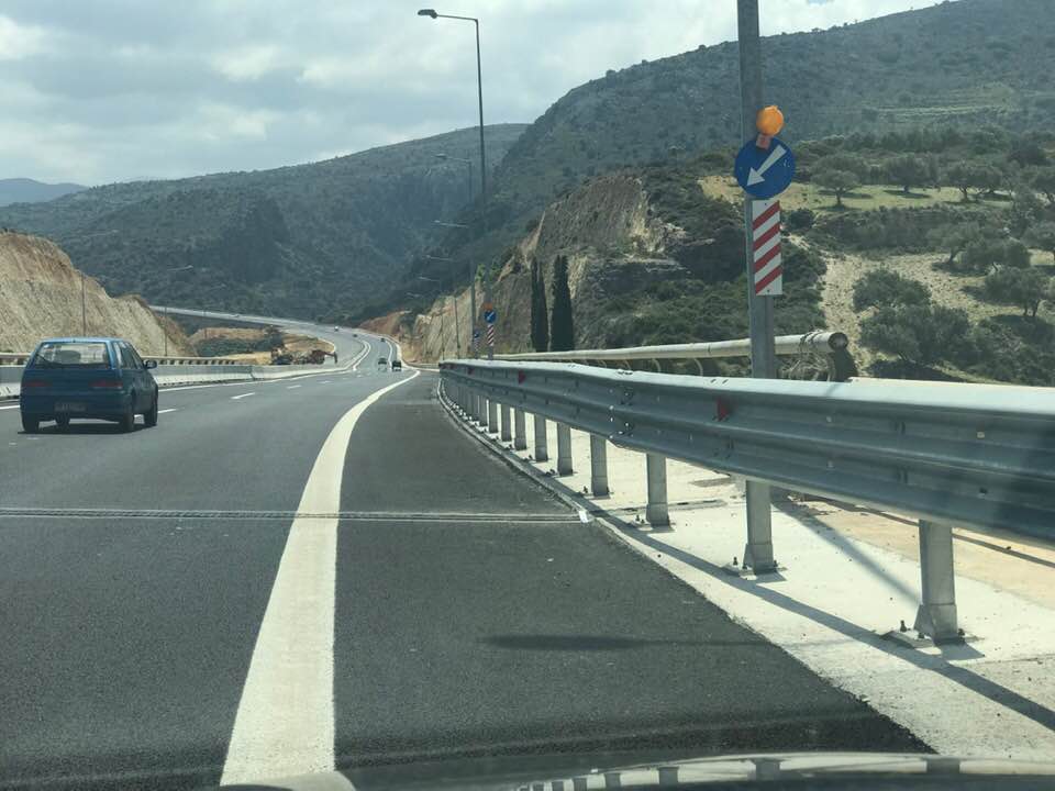-Επικίνδυνο εξαιρετικά το όριο των 100 km λίγα μέτρα πριν το τέλος του διαχωριστικού στηθαίου προς δυσμάς και μάλιστα κάτω από την πινακίδα της αναγγελίας της διπλής κυκλοφορίας!
