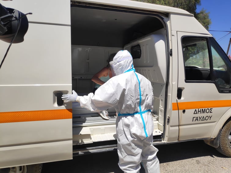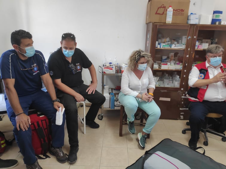 Η αποστολή κατεύθασε στο ακριτικό νησί, περίπου στις 12:30 το μεσημέρι της Τρίτης και αμέσως ξεκίνησε η θεωρητική και πρακτική εφαρμογή του σχεδίου αντιμετώπισης πιθανού κρούσματος κορωνοϊού στην Γαύδο.