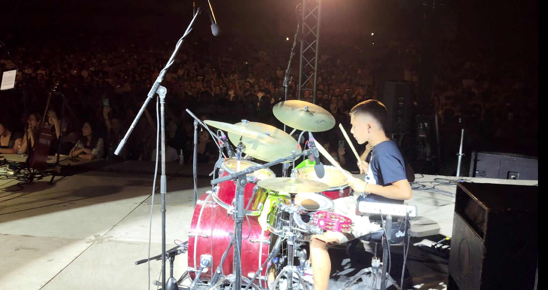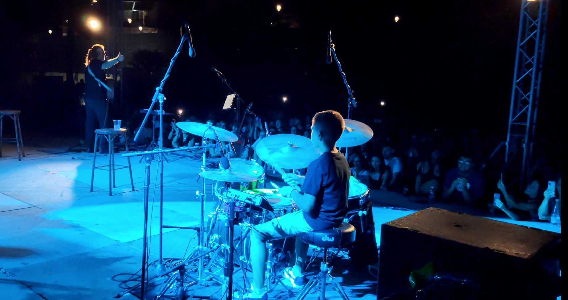Ένας 10χρονος που παίζει ντραμς, έκλεψε τις εντυπώσεις στη συναυλία των Πυξ -Λαξ το βράδυ του Σαββάτου στα Χανιά.