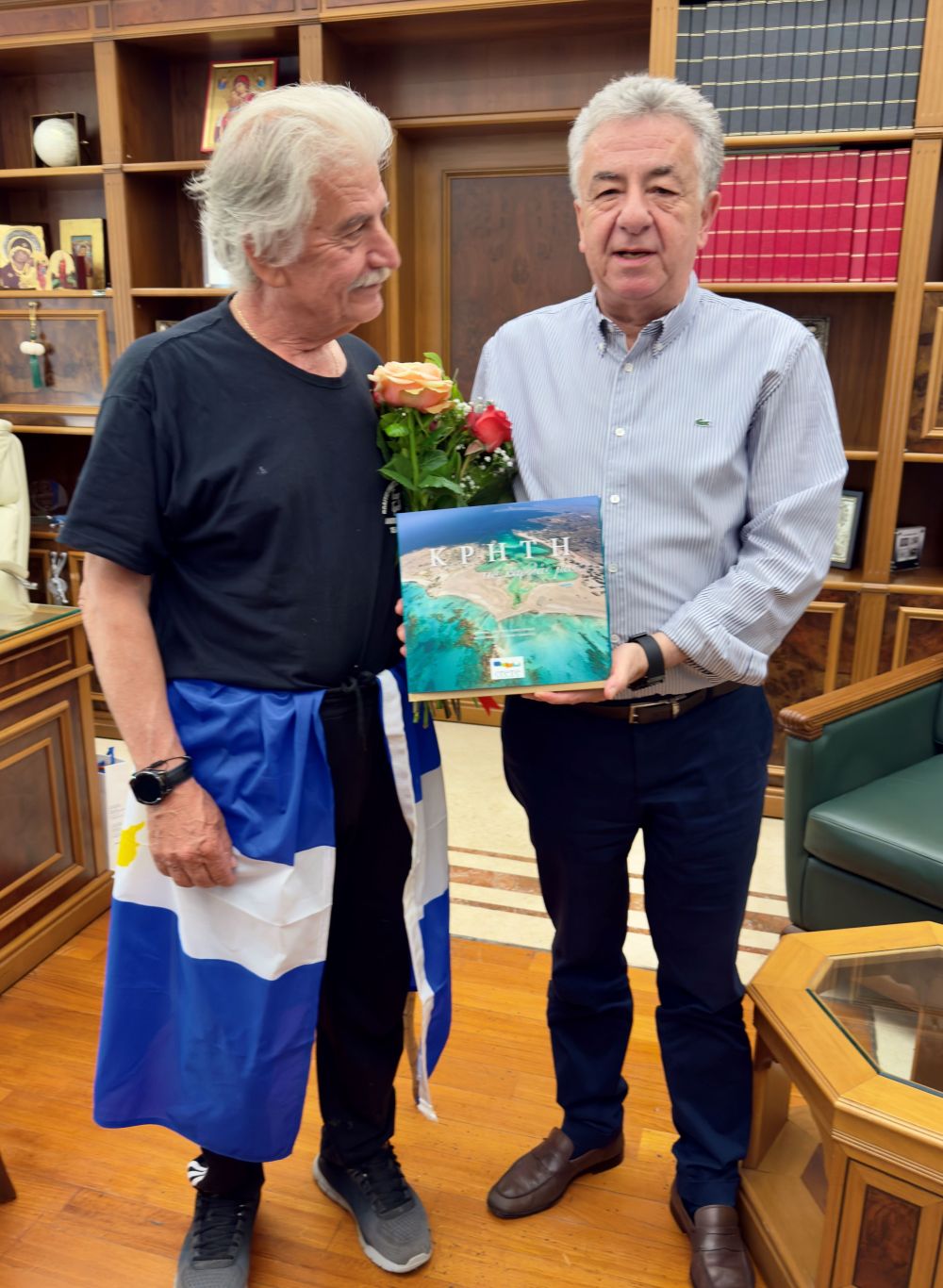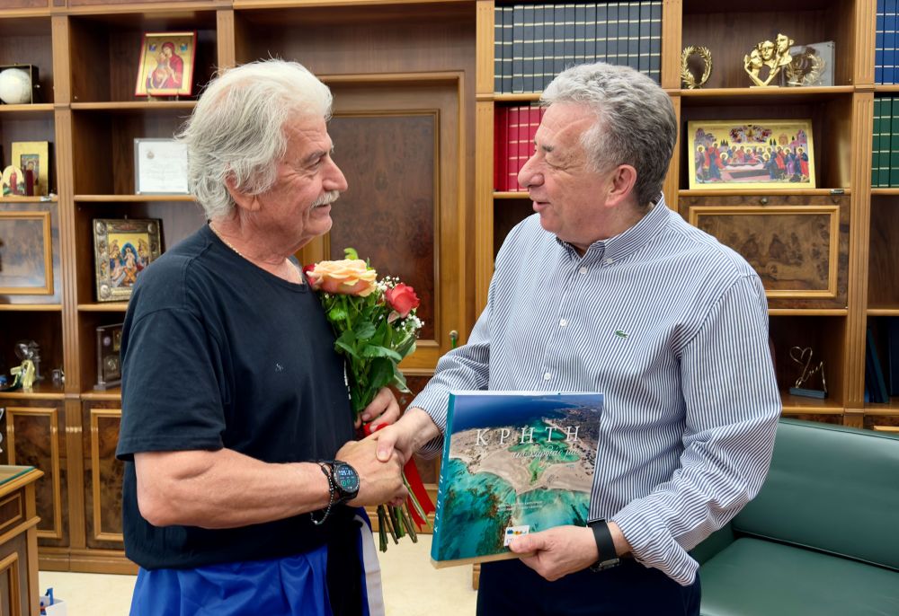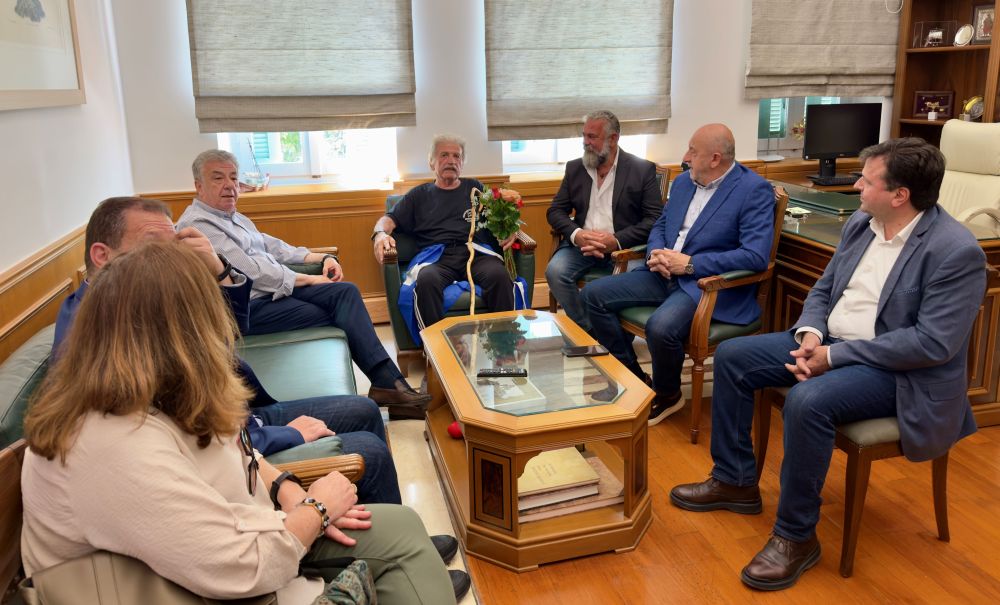 Τον αθλητή υπεραποστάσεων Θεοχάρη Αθητάκη υποδέχθηκε σήμερα στο κτίριο της Περιφέρειας ο Περιφερειάρχης Κρήτης Σταύρος Αρναουτάκης, με αφορμή την ολοκλήρωση της ιστορικής διαδρομής 153 χιλιομέτρων που πραγματοποίησε ο αθλητής από την Ανώπολη Σφακίων προς το Ηράκλειο.
