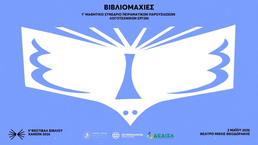 Το Σάββατο 2 Μαΐου 2026, στο Θέατρο «Μίκης Θεοδωράκης», θα πραγματοποιηθεί το 1ο Μαθητικό Συνέδριο Πειραματικών Παρουσιάσεων Λογοτεχνικών Έργων, όπου μαθητικές ομάδες από σχολεία του Νομού Χανίων (Δημοτικό σχολείο Καλυβών, Λύκειο Νέας Κυδωνίας, Λύκειο Σούδας, Γυμνάσιο Καντάνου, ΕΠΑΛ Καντάνου, Γυμνάσιο Παλαιόχωρας, Δημοτικό Σχολείο Ανώπολης, Δημοτικό Σχολείο Δραπανιά, Γυμνάσιο Αλικιανού) που παρακολούθησαν τα εργαστήρια του εκπαιδευτικού προγράμματος «Βιβλιομαχίες» θα παρουσιάσουν συλλογικές, διακαλλιτεχνικές εργασίες βασισμένες σε λογοτεχνικά έργα της ελληνικής και παγκόσμιας γραμματείας, και θα ακολουθήσει συζήτηση με το μαθητικό και ενήλικο κοινό.