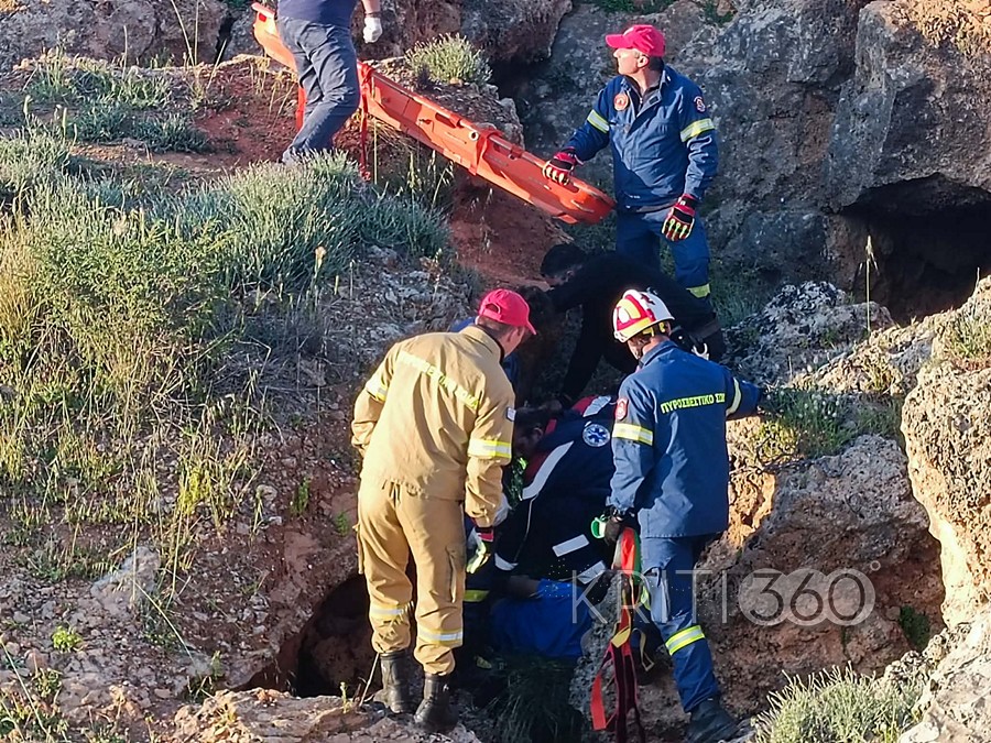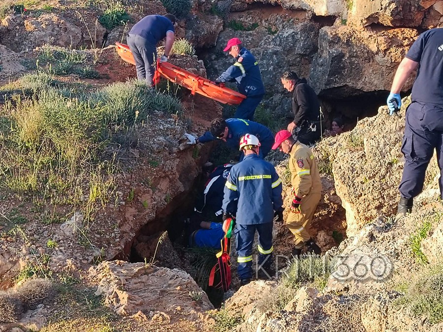 Όπως μπορείτε να δείτε στις φωτογραφίες του kriti360.gr, έπεσε στο σημείο όπου υπάρχει μια μικρή σπηλιά.