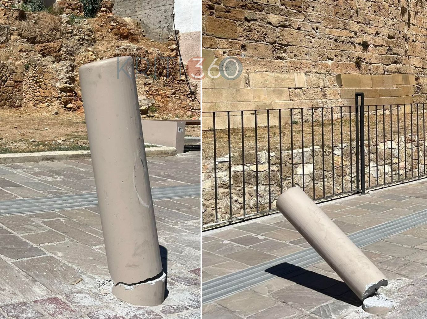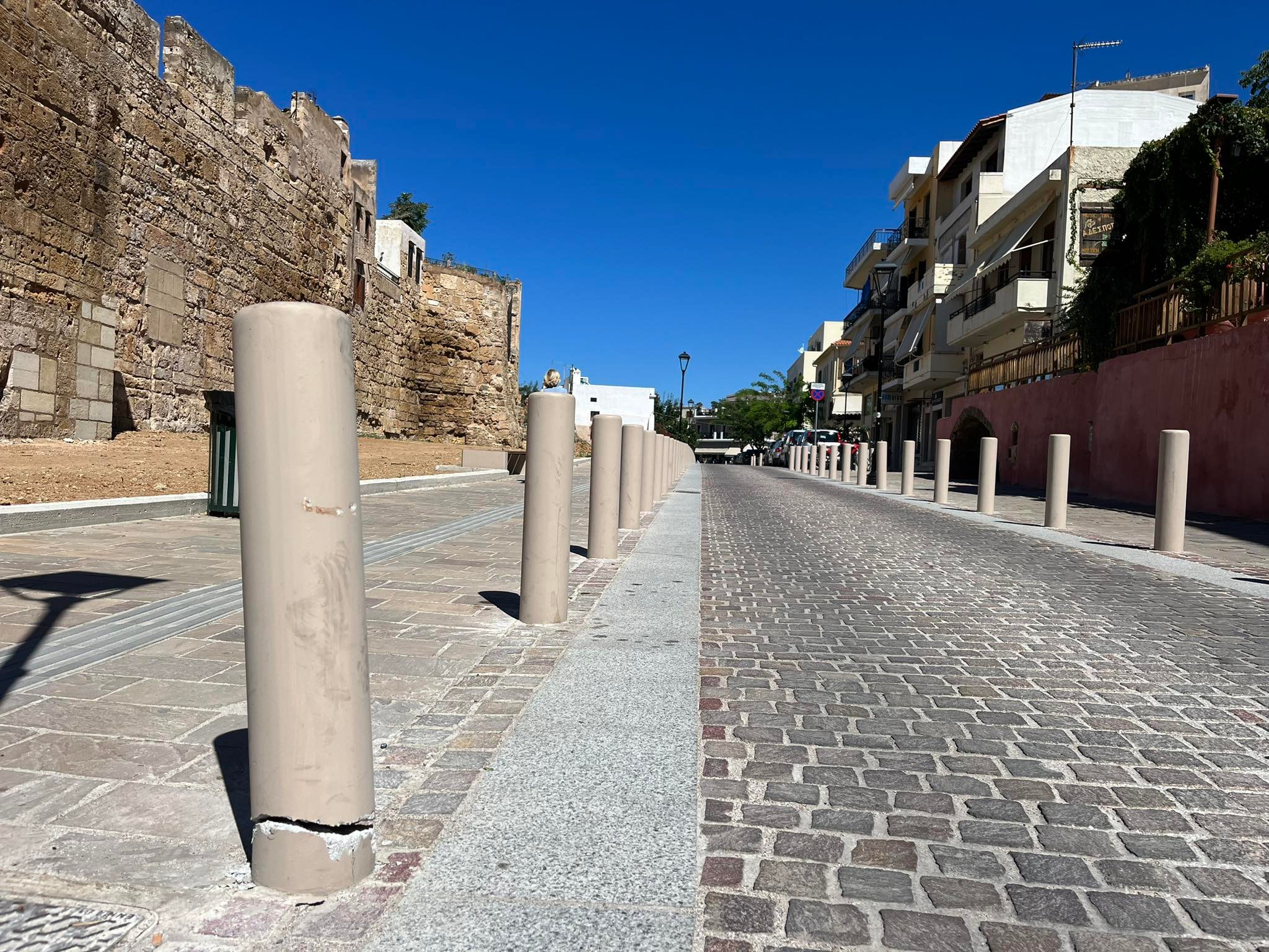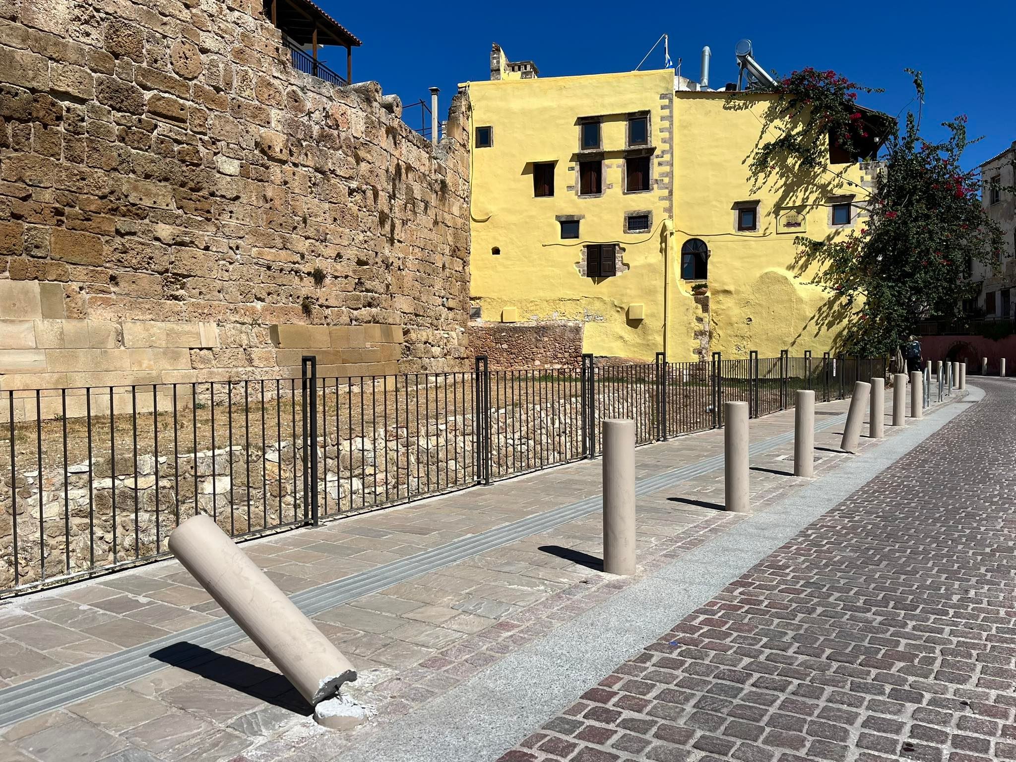 Μέσα σε λίγους μήνες ήδη πολλά από τα κολονάκια που έχουν τοποθετηθεί κατά μήκος της οδού Σήφακα στη παλιά Πόλη έχουν γκρεμιστεί