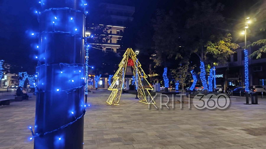 Μπλε ηλεκτρίκ για τις γιορτές διακοσμήθηκε η Πλατεία 1866 όπως και πέρσι, τώρα όμως προστέθηκε και ο τεράστιος Αϊ-Βασίλης.