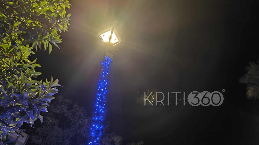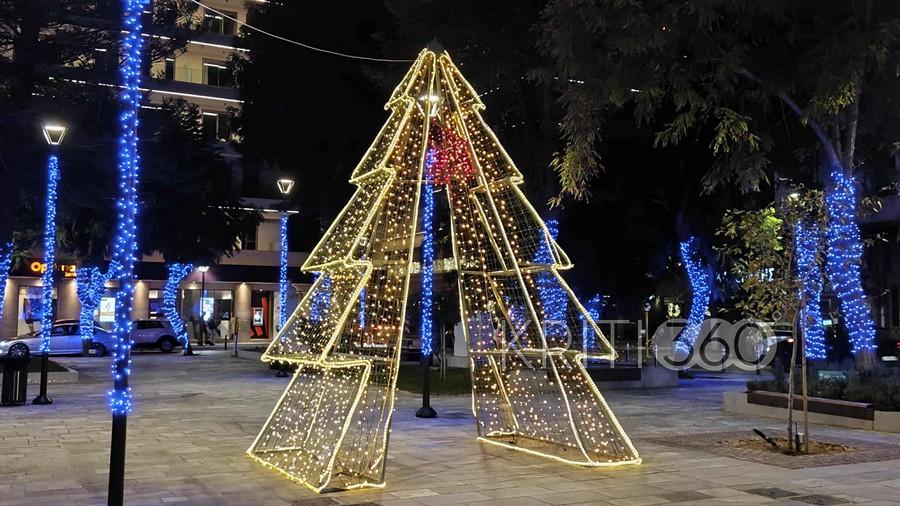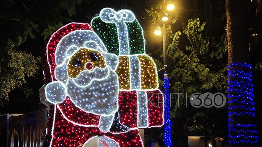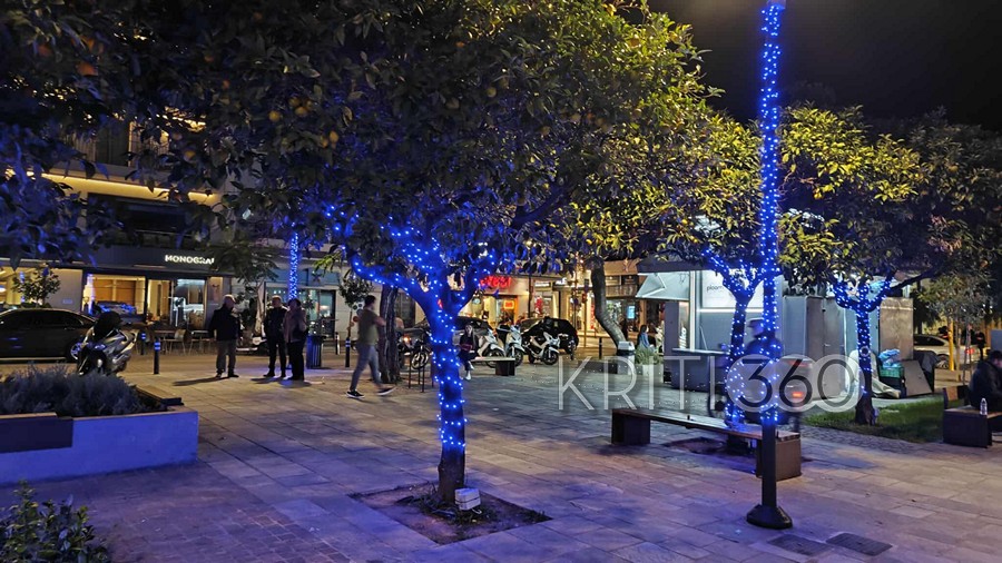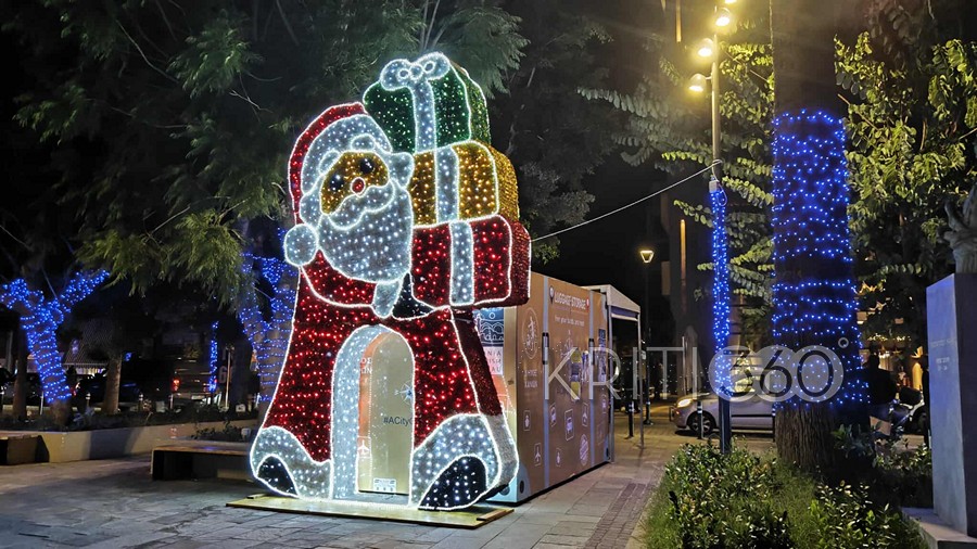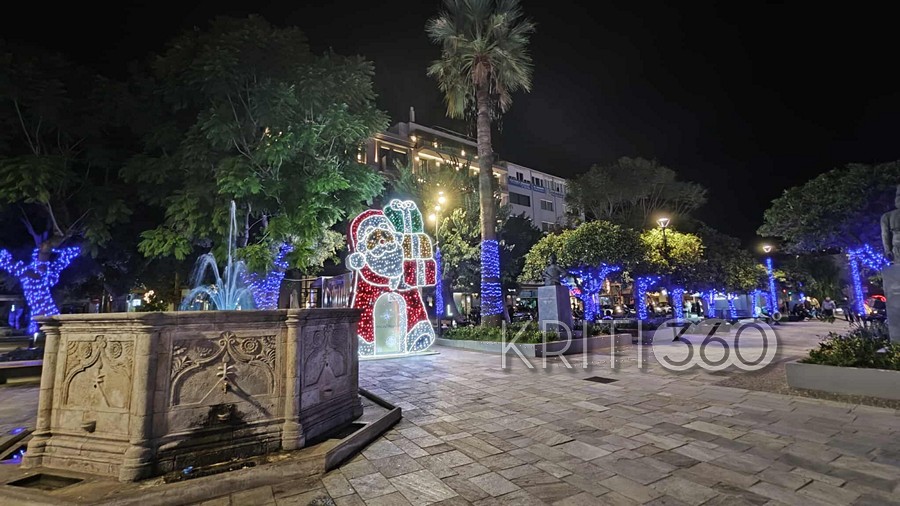 Μπλε ηλεκτρίκ για τις γιορτές διακοσμήθηκε η Πλατεία 1866 όπως και πέρσι, τώρα όμως προστέθηκε και ο τεράστιος Αϊ-Βασίλης.