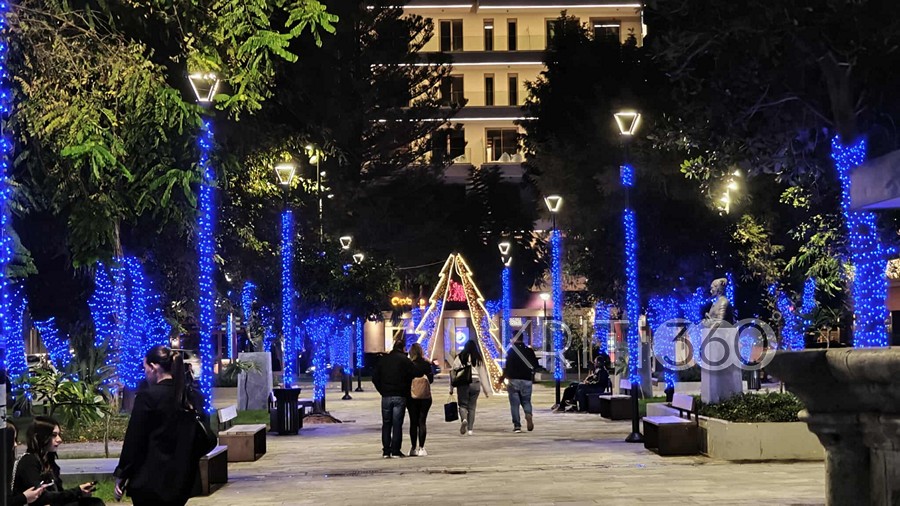 Η πλατεία είναι εντυπωσιακή το βράδυ, με τα φωτάκια να έχουν τοποθετηθεί σε δέντρα και στύλους ηλεκτροφωτισμού.
