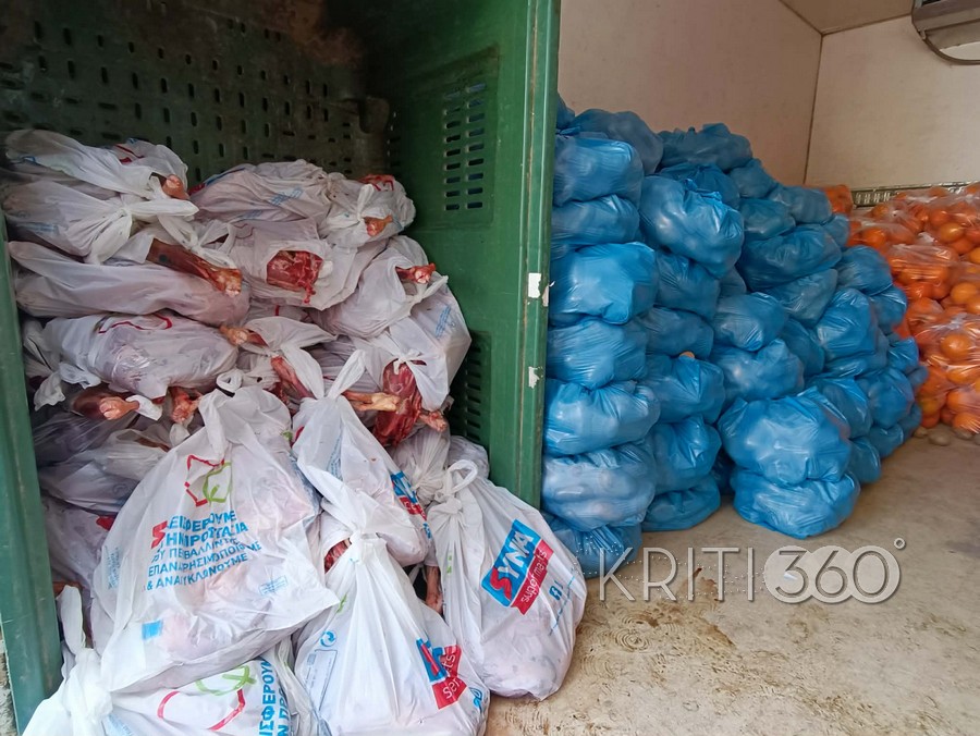 Τα τρόφιμα ήταν προσφορά επιχειρηματιών των Χανίων και αυτή η πράξη αλληλεγύης υλοποιείται κάθε χρόνο αυτές τις Αγιες ημέρας, απο το Ράδιο Αμόρε