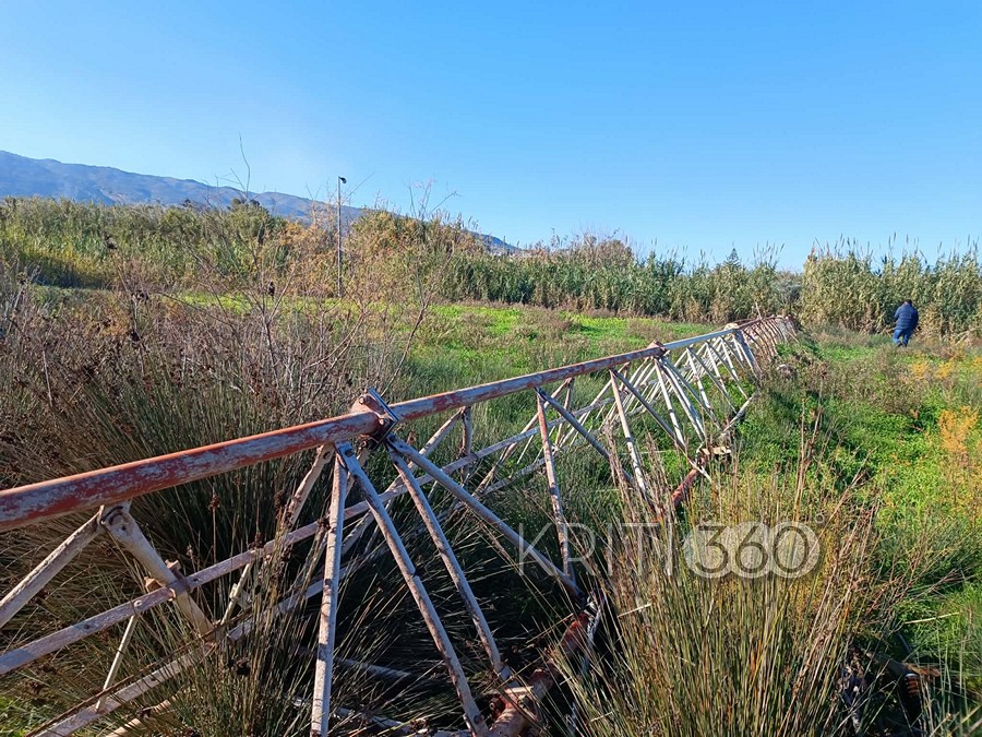 Ξεκάθαρη δολιοφθορά είναι η αιτία της πτώσης της κεραίας της ΕΡΤ στη Σούδα, καθώς τα καλώδια που συγκρατούσαν την κατασκευή έχουν εμφανώς κοπεί με εργαλείο από αγνώστους και έτσι η κεραία κατέρρευσε.