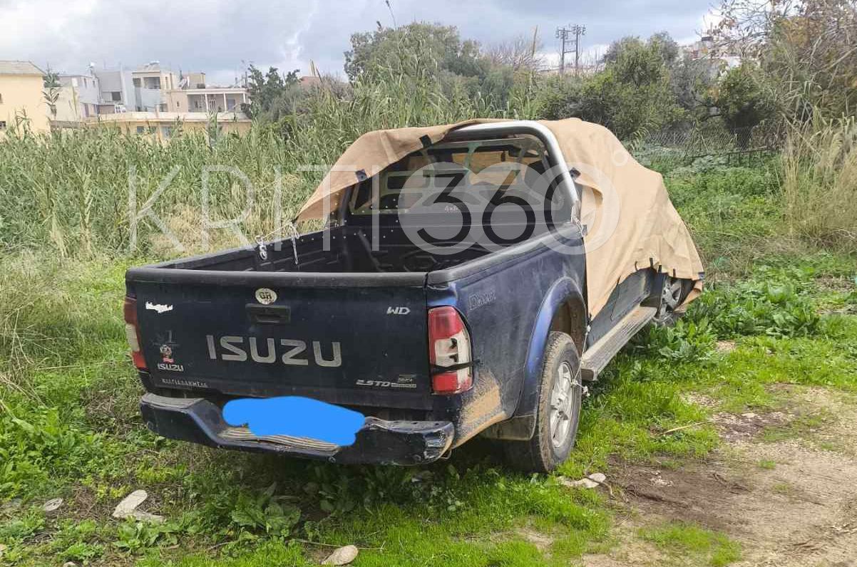 Σύμφωνα με πληροφορίες του kriti360.gr, οι αστυνομικές αρχές εντόπισαν το αγροτικό όχημα σε χωράφι στο κέντρο των Χανίων, όπως μπορείτε να δείτε στις φωτογραφίες που εξασφάλισε το kriti360.gr.