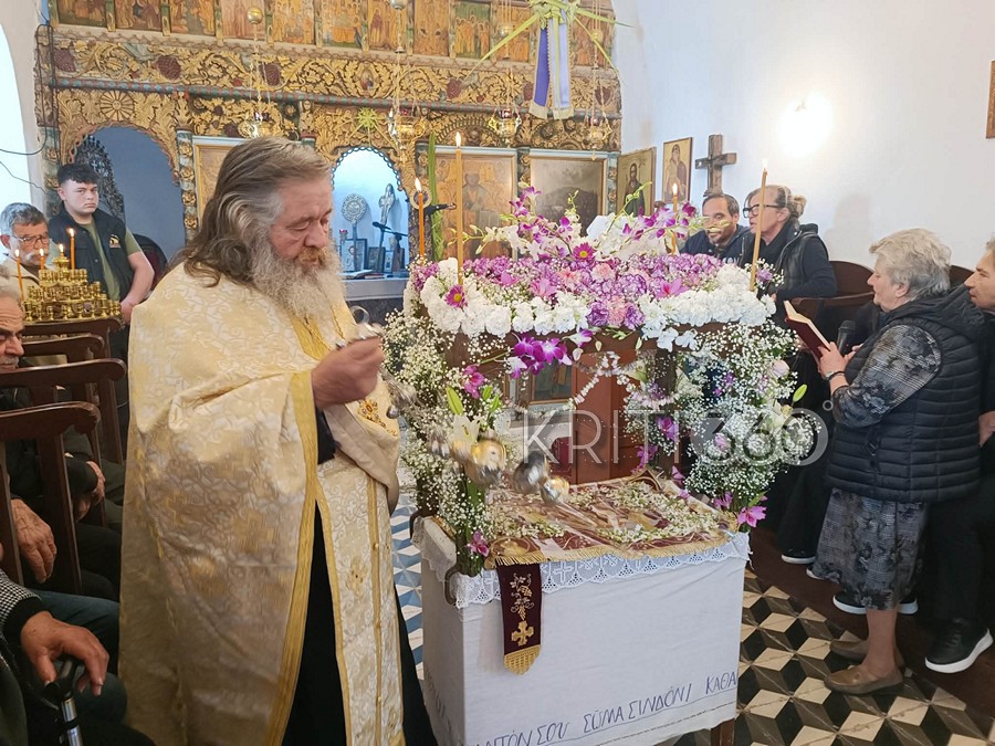 Στη μονή Αγίων Πατέρων συγκεντρώθηκαν πιστοί, ενώ την ακολουθία τέλεσε ο π. Ευτύχιος Ανδρουλάκης.