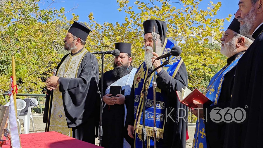 Νωρίτερα Τελέστηκε δοξολογία στην οποία χοροστάτησε ο Μητροπολίτης Κισσάμου και Σελίνου Αμφιλόχιος, τοποτηρητής της Μητρόπολης Κυδωνίας και Αποκορώνου.