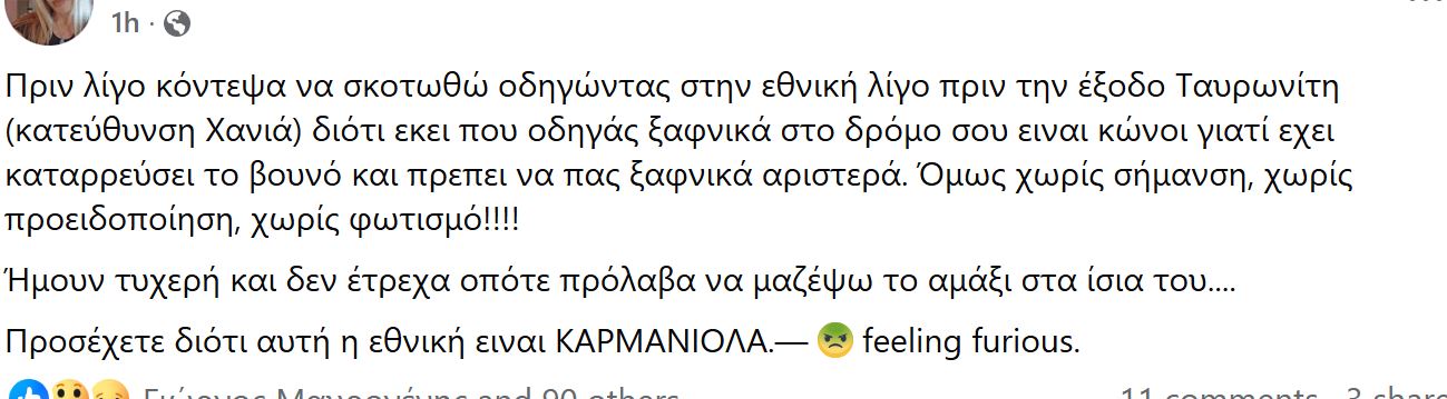 Επικίνδυνη κατάσταση στον ΒΟΑΚ, κοντά στον κόμβο Ταυρωνίτη στο ρεύμα με κατεύθυνση προς Χανιά καταγγέλλουν οδηγοί.