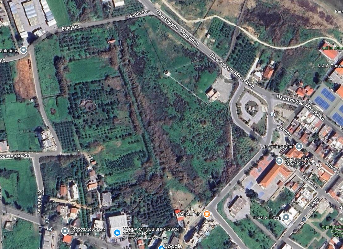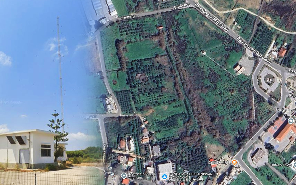 Το οικόπεδο αυτό, έκτασης περίπου 48 στρεμμάτων, είχε παραχωρηθεί από τον δήμο Χανίων (τότε κοινότητα Σούδας) το 1953 στην τότε ΕΙΡ (Εθνικό Ίδρυμα Ραδιοφωνίας) για να τοποθετηθεί εκεί ο πομπός των μεσαίων κυμάτων (ΑΜ) και η γνωστή κεραία.