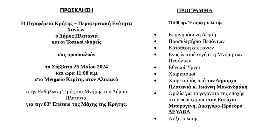 Η ιστορική μνήμη δε σβήνει και η Αντιπεριφέρεια Χανίων, ο Δήμος Πλατανιά και οι τοπικοί φορείς κάλεσαν τον κόσμο να μάθει την ημέρα αυτή τι έγινε στην κοίτη του ποταμού Κερίτη από την Ναζιστική κατοχή.
