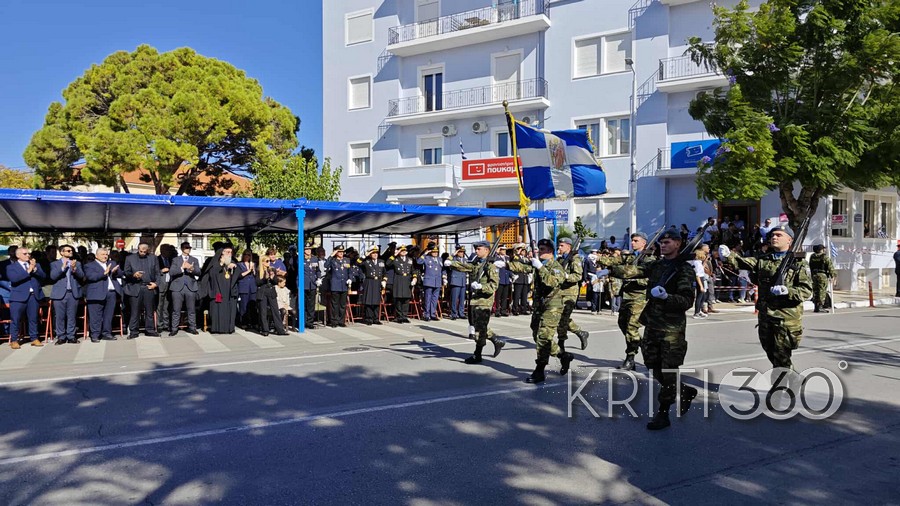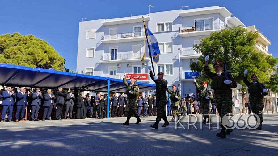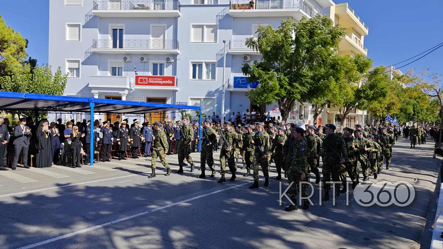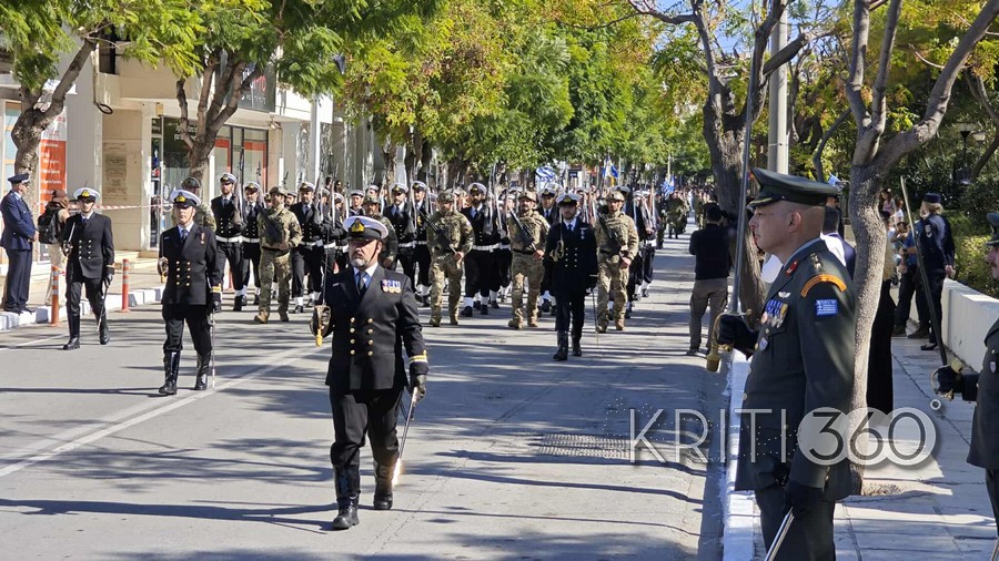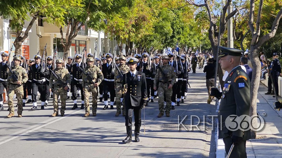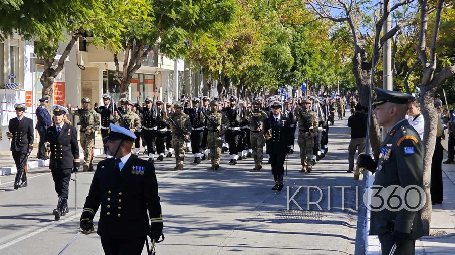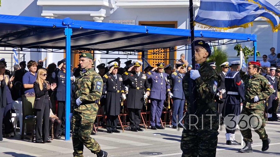 Άνδρες της 5ης Μεραρχίας Στρατού, της 115 Πτέρυγας Μάχης, του Ναυστάθμου Κρήτης, της Εθνοφυλακής και Έφεδροι αξιωματικοί έδωσαν δυναμικό “παρών” στις εορταστικές εκδηλώσεις για τη μεγάλη Εθνική Εορτή αποδεικνύοντας το υψηλό φρόνημα των Ενόπλων Δυνάμεων της χώρας.