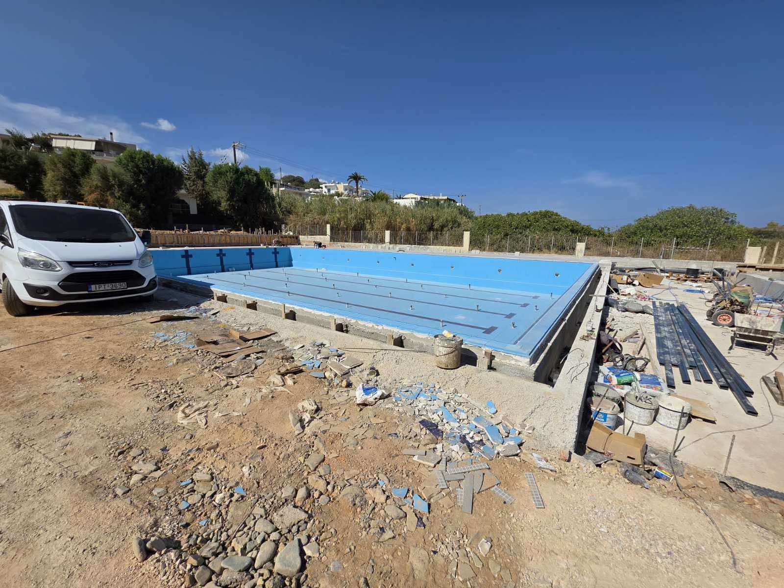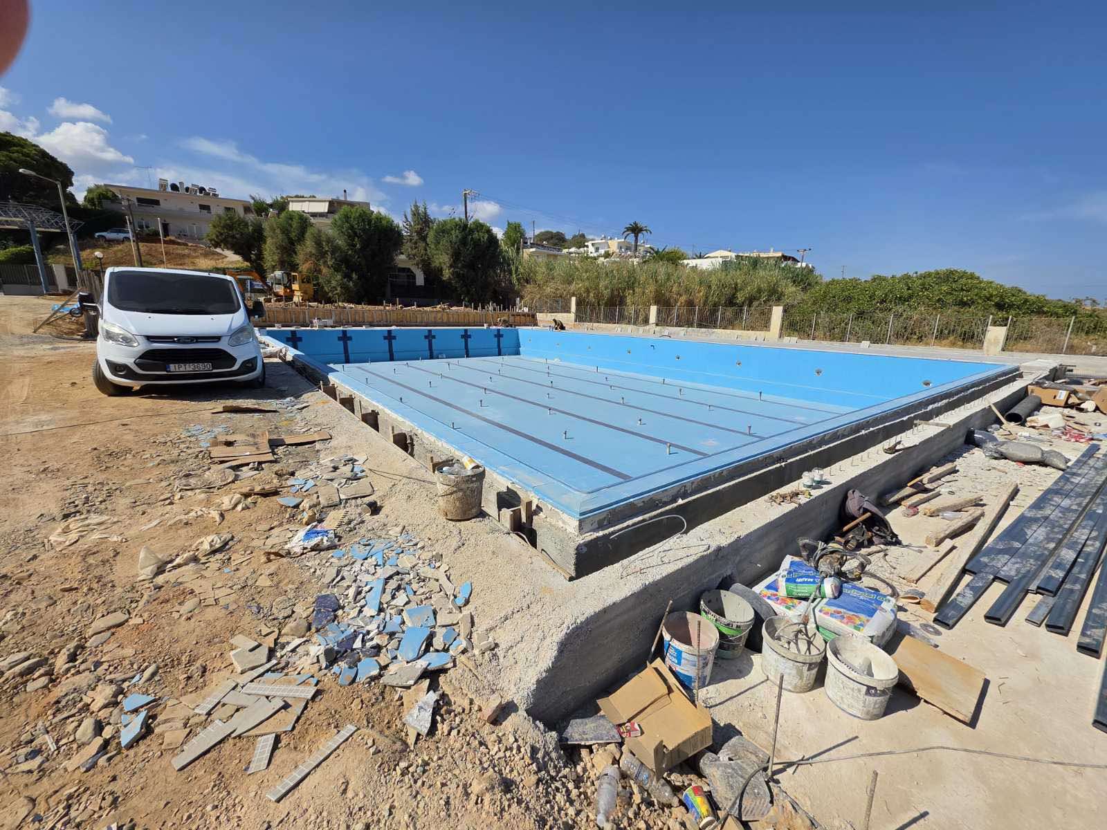 Σημαντική πρόοδος καταγράφεται στις εργασίες για τις νέες πισίνες στον Κλαδισό, έργο του Δήμου Χανίων που αναμένεται να ενισχύσει τις αθλητικές υποδομές της πόλης. Η μικρότερη πισίνα, μήκους 12 μέτρων, όπως μπορείτε να δείτε στις φωτογραφίες, έχει ήδη αρχίσει να παίρνει μορφή, ενώ συνεχίζονται οι κατασκευαστικές εργασίες για τη μεγαλύτερη.