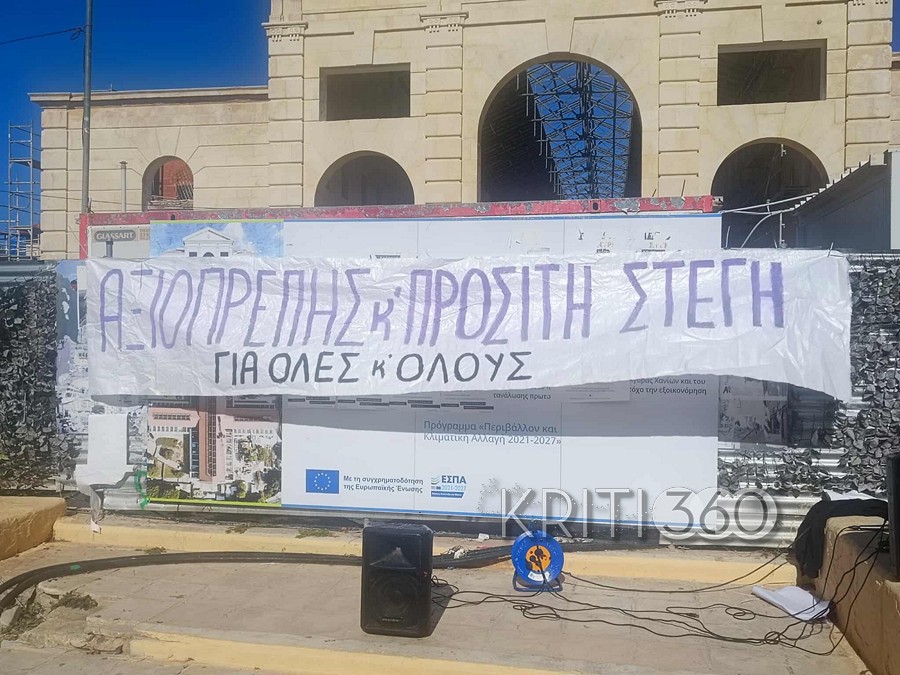 Συλλαλητήριο διαμαρτυρίας για το οξύ στεγαστικό πρόβλημα που δεν λύνεται, ιδιαίτερα στα Χανιά, πραγματοποιήθηκε το πρωί του Σαββάτου στο κέντρο της πόλης.