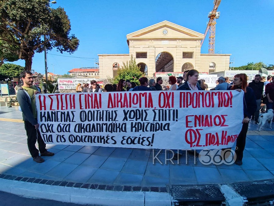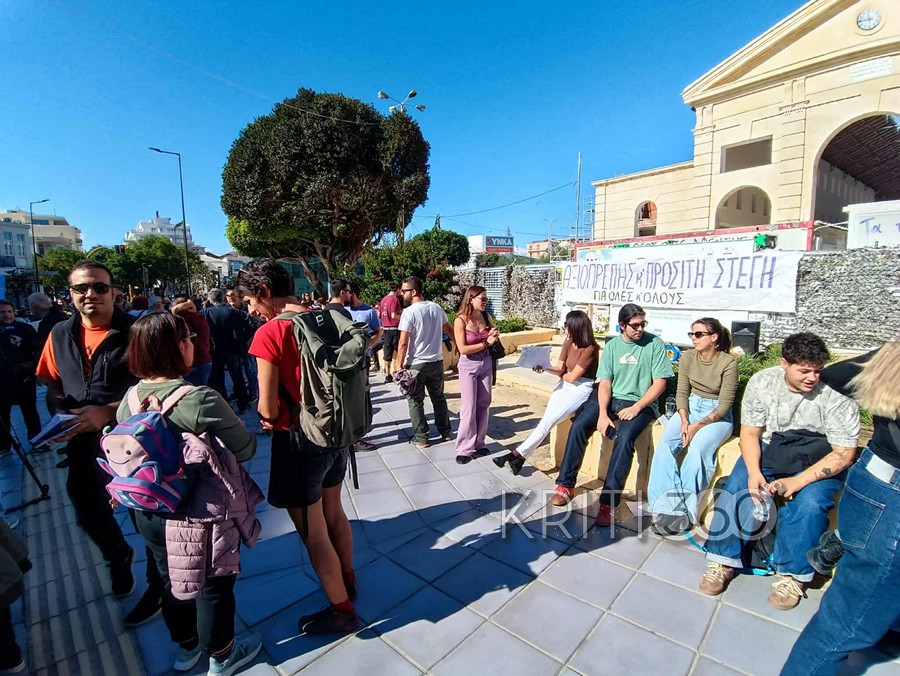 Συλλαλητήριο διαμαρτυρίας για το οξύ στεγαστικό πρόβλημα που δεν λύνεται, ιδιαίτερα στα Χανιά, πραγματοποιήθηκε το πρωί του Σαββάτου στο κέντρο της πόλης.