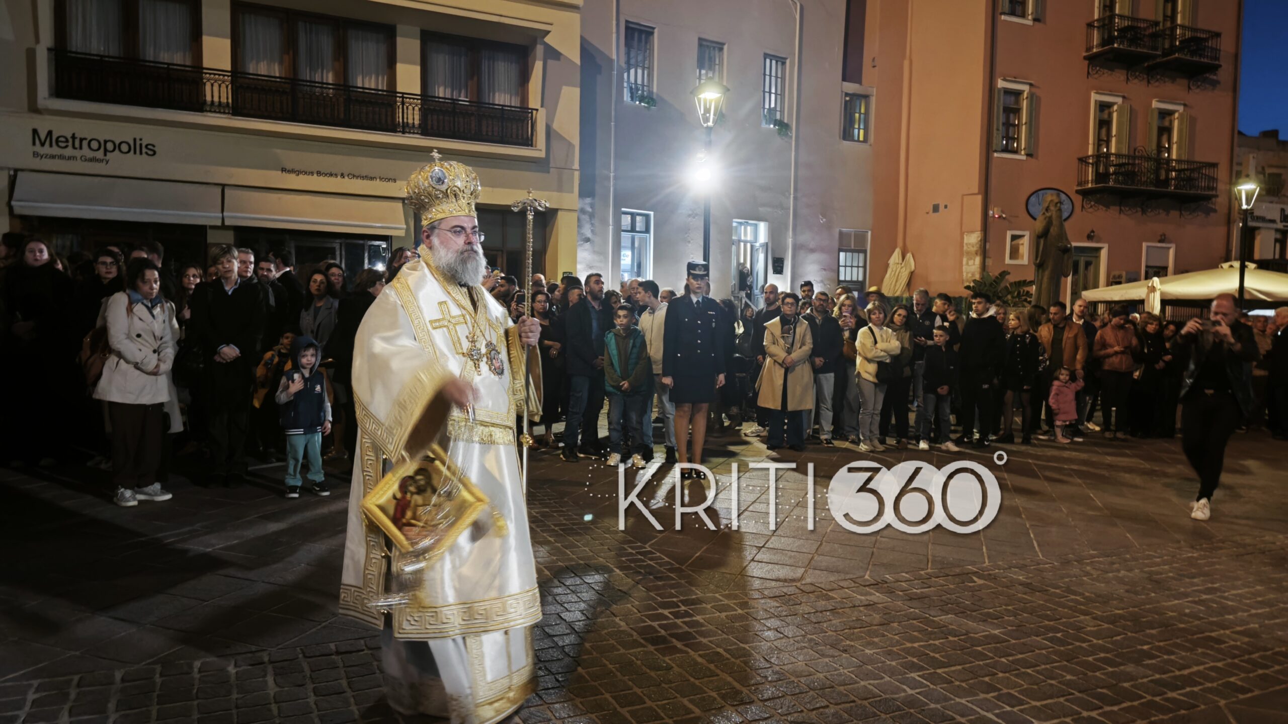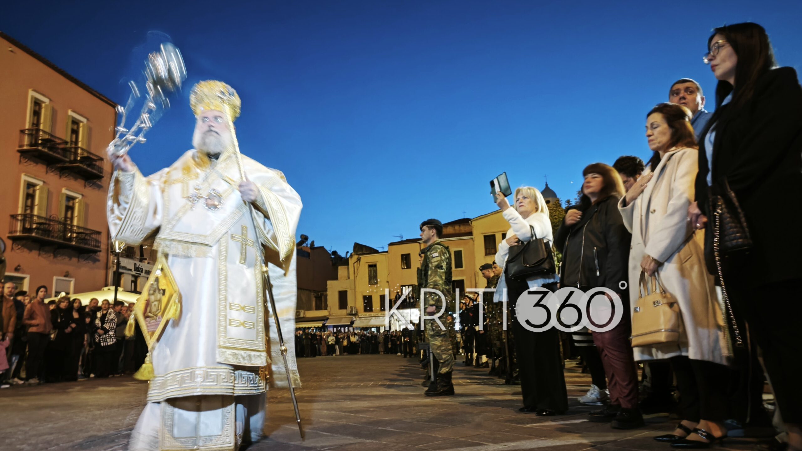 Χοροστατουντος του Μητροπολίτη Κυδωνίας και Αποκορώνου κ. Τίτου τελούνταν το βράδυ της Μ. Παρασκευής η ακολουθία του Επιταφίου στη Μητρόπολη των Χανίων.