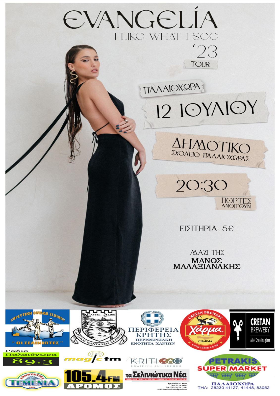 «I like what I see Tour»: Η Evangelia απόψε Τετάρτη 12 Ιουλίου στην Παλαιόχωρα Χανίων σε ένα μεγάλο μουσικό γεγονός!