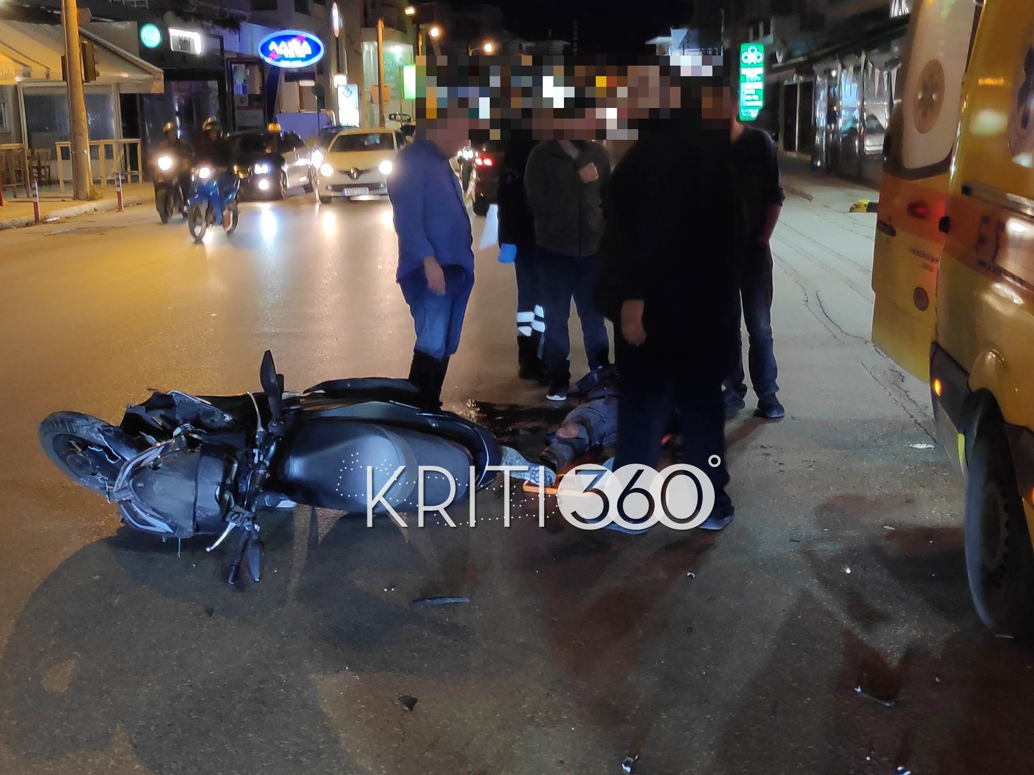 Από τη σύγκρουση ο νεαρός οδηγός μηχανής τραυματίστηκε και στη συνέχεια μεταφέρθηκε στο Νοσοκομείο Χανίων με ασθενοφόρο του ΕΚΑΒ.