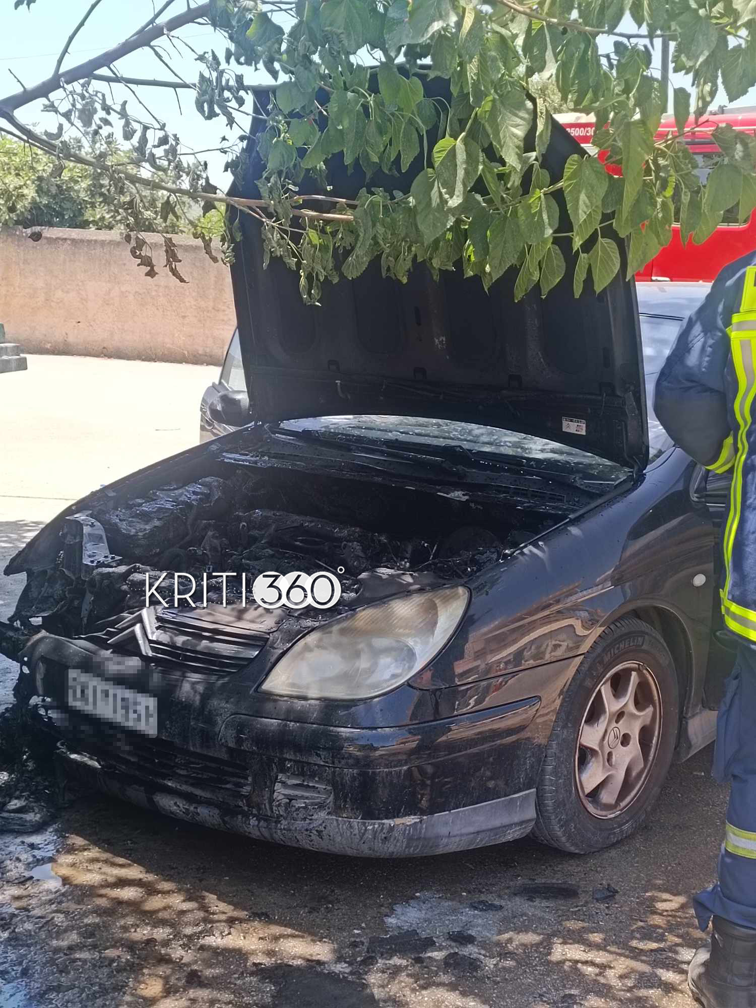Η πυρκαγιά εκδηλώθηκε, σύμφωνα με πληροφορίες του kriti 360, στον κινητήρα του οχήματος, έξω απο το Μοναστήρι της Χρυσοπηγής. Επί τόπου έσπευσαν δύο οχήματα της Πυροσβεστικής με 4 άνδρες που έσησαν τη φωτιά πριν πάρει μεγάλες διάστασεις.