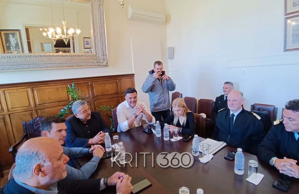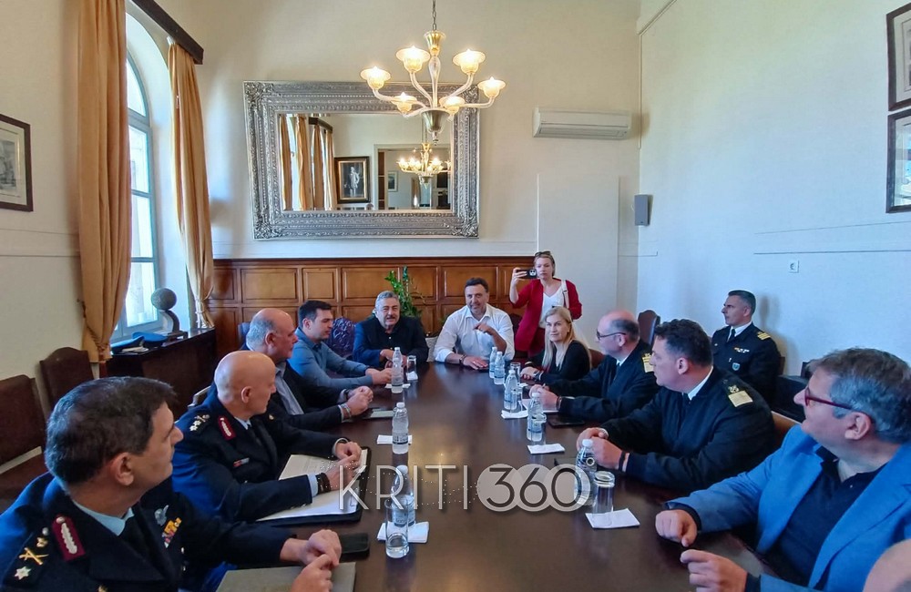 Σε κλίμα εντατικής προετοιμασίας για την τουριστική περίοδο και με βασικό άξονα τη διαχείριση του μεταναστευτικού, πραγματοποιήθηκε ευρεία σύσκεψη στα Χανιά υπό τον Υπουργό Ναυτιλίας Βασίλης Κικίλιας, στο πλαίσιο της διήμερης περιοδείας του στην Κρήτη.