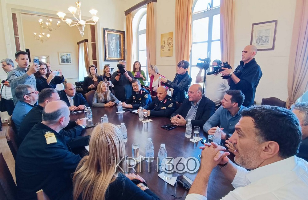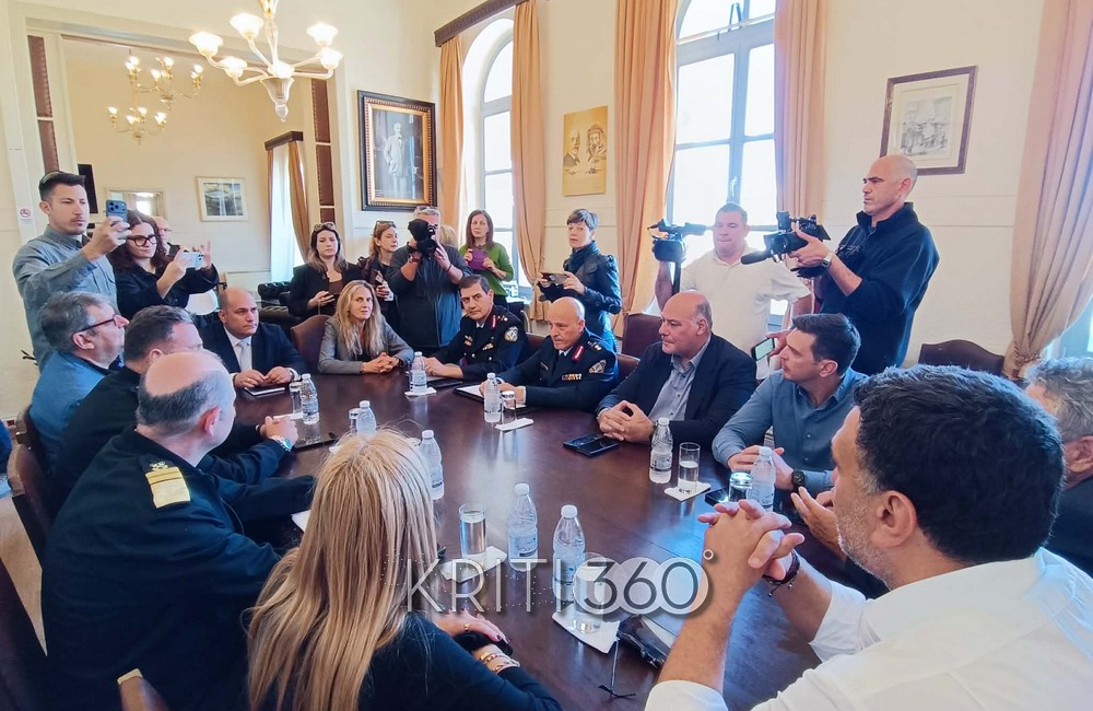 Η σύσκεψη έλαβε χώρα στην Αντιπεριφέρεια Χανίων, με τη συμμετοχή της υφυπουργού Μετανάστευσης Σέβη Βολουδάκη, του βουλευτή Χανίων Αλέξανδρος Μαρκογιαννάκης, του Αντιπεριφερειάρχη Νίκος Καλογερής, καθώς και εκπροσώπων της Τοπικής Αυτοδιοίκησης, των Σωμάτων Ασφαλείας και του Λιμενικού.