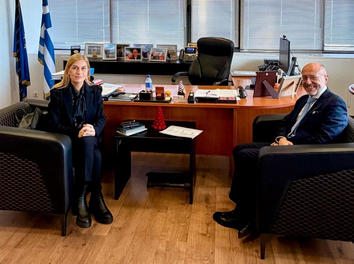 Η Υφυπουργός Μετανάστευσης και Ασύλου, Σέβη Βολουδάκη, συναντήθηκε με τον Υφυπουργό Υγείας, αρμόδιο για θέματα ψυχικής υγείας, Δημήτρη Βαρτζόπουλο, με αντικείμενο ζητήματα που αφορούν την ενίσχυση και αναβάθμιση των αντίστοιχων υπηρεσιών στα Χανιά.