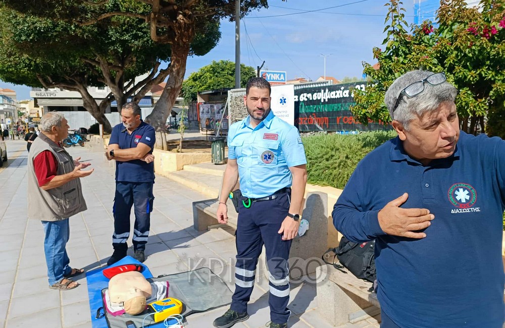 Στην καρδιά των Χανίων, στην Πλατεία Δημοτικής Αγοράς, οι πολίτες έχουν την ευκαιρία να συμμετάσχουν σε εκπαιδευτικές δραστηριότητες για την Καρδιοπνευμονική Αναζωογόνηση (ΚΑΡΠΑ) και τη χρήση Αυτόματου Εξωτερικού Απινιδωτή (AED), στο πλαίσιο της Παγκόσμιας Ημέρας Επανεκκίνησης Καρδιάς που διοργανωνει το ΕΚΑΒ. Οι δράσεις θα συνεχιστούν μέχρι τις 13:00.