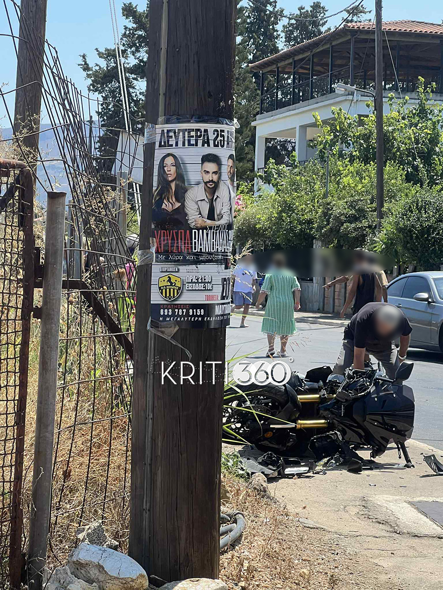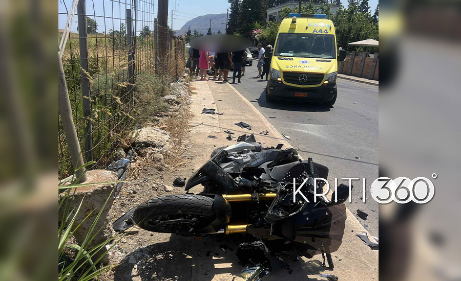 Ο οδηγός της μηχανής τραυματίστηκε και παρελήφθη αιμόφυρτος, με σοβαρά τραύματα, από ασθενοφόρο του ΕΚΑΒ, που τον μετέφερε στο Νοσοκομείο Χανίων.