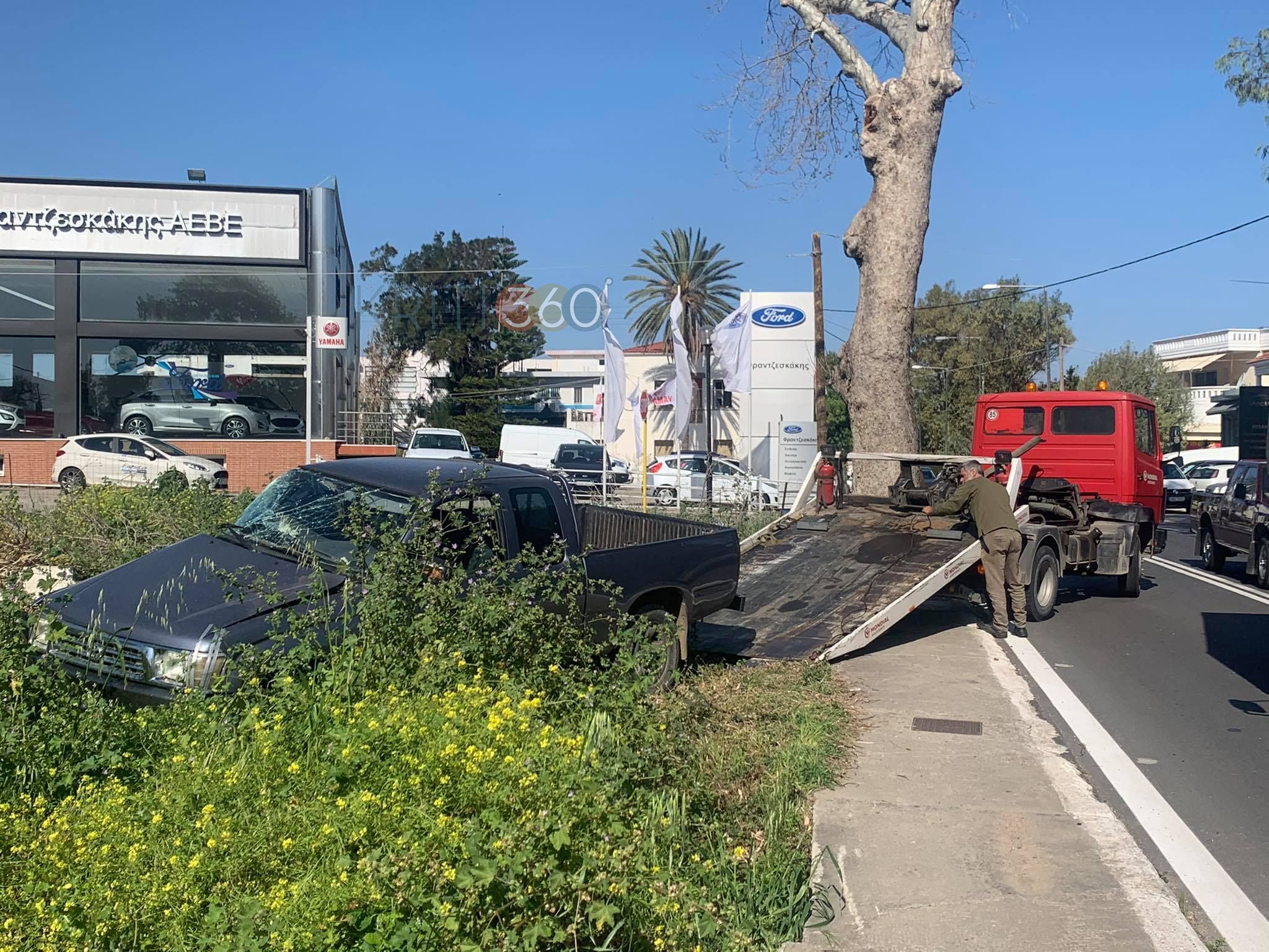 Το περιστατικό σημειώθηκε λίγο πριν τις 9:30 στη λεωφόρο Σούδας στο ύψος της αντιπροσωπείας αυτοκινήτων της Ford, όταν ένα αγροτικό όχημα συγκρούστηκε με μια νταλίκα κάτω από συνθήκες που ερευνώνται από την τροχαία.