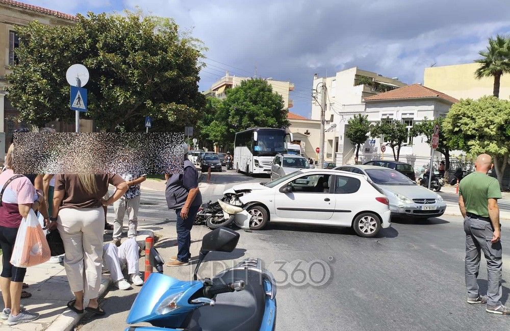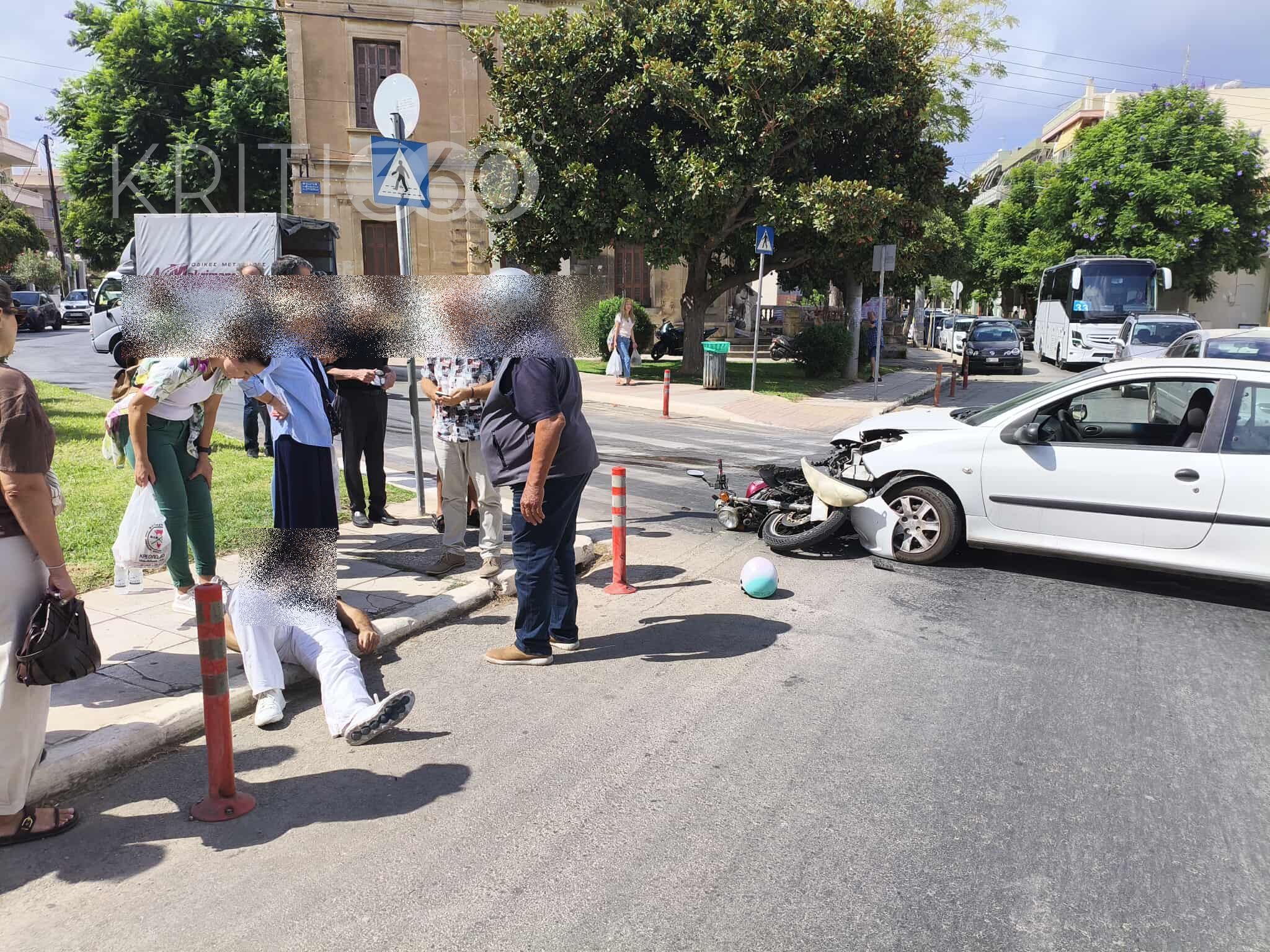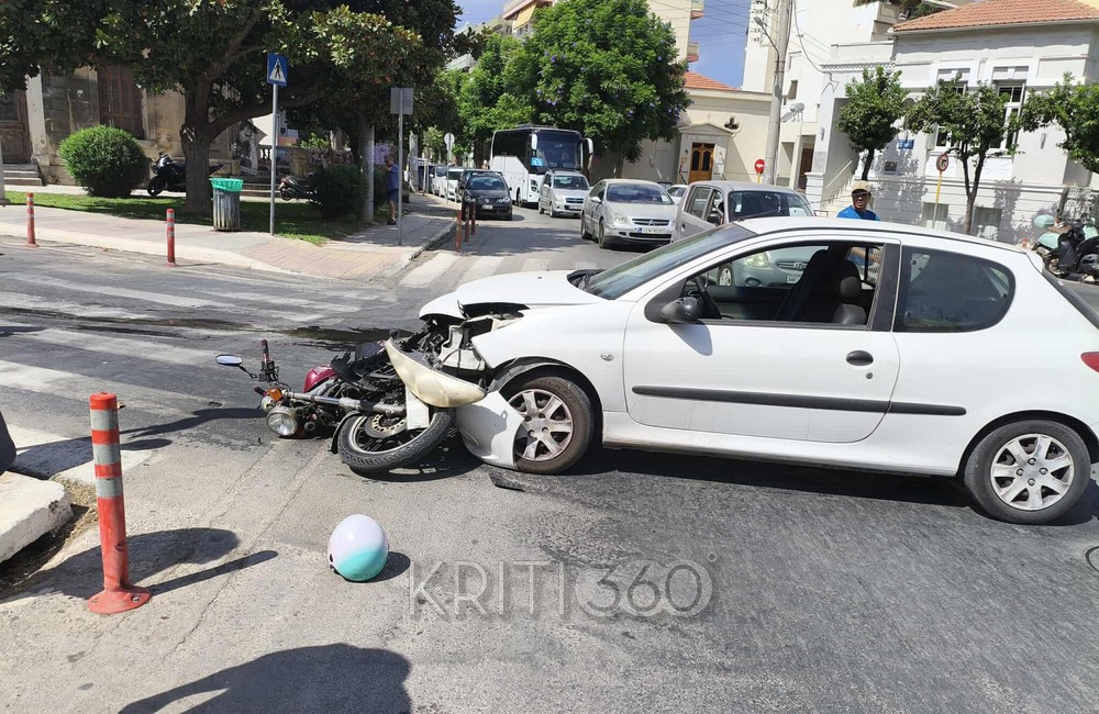 Τροχαίο ατύχημα σημειώθηκε λίγο μετά τη 1 το μεσημέρι της Παρασκευής στην πλατεία Δικαστηρίων στα Χανιά, όταν ΙΧ αυτοκίνητο συγκρούστηκε με μοτοσικλέτα.