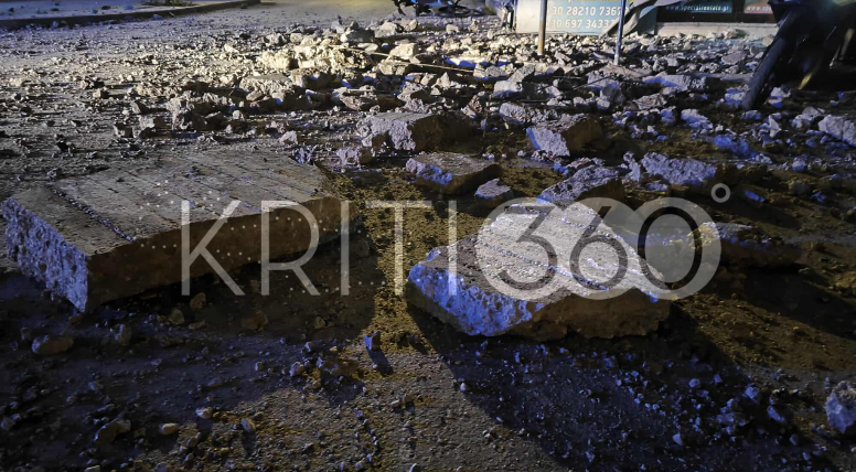 Σοκ προκαλούν οι εικόνες στη διασταύρωση των οδών Παρθενίου Κελαϊδή και Κυδωνιας στο Κέντρο των Χανίων .