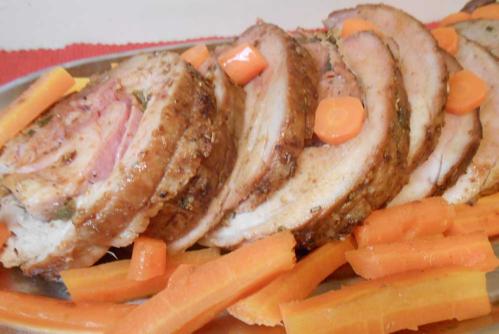 Για το ρολό ζητάμε από τον κρεοπώλη να ετοιμάσει 2 kg. Από χοιρινό μπούτι σε ρολό με δίχτυ και να το γεμίσει με 3 φέτες ζαμπόν και 1 πιπεριά πράσινη ψιλοκομμένη