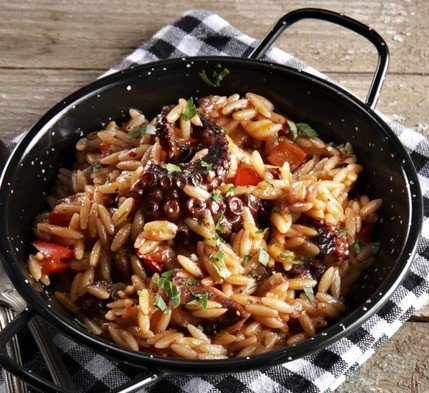 Σουρώνετε το κριθαράκι και το ρίχνετε απευθείας στην κατσαρόλα με το χταπόδι. Ανακατεύετε καλά, σκεπάζετε την κατσαρόλα και αφήνετε το φαγητό να σταθεί για 5 λεπτά. Σερβίρετε στα πιάτα και πασπαλίζετε με τον ψιλοκομμένο μαϊντανό.