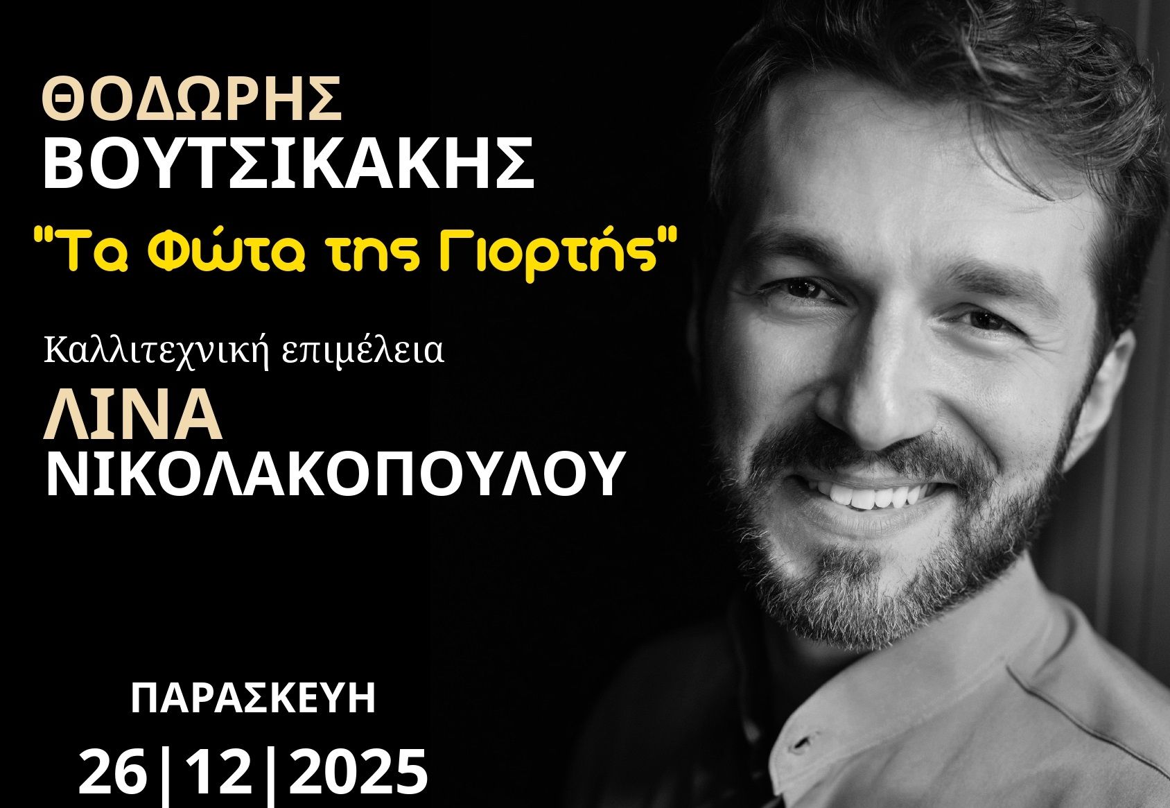 Αμέσως μετά το drone show, στις 19:00 στην πύλη Ιησού, θα πραγματοποιηθεί συναυλία με τον Θοδωρή Βουτσικάκη με ελεύθερη είσοδο και ένα πλούσιο γιορτινό πρόγραμμα που επιμελείται η Λίνα Νικολακοπούλου, με επιλογές από σημαντικά ρεπερτόρια αγαπημένων Ελλήνων και ξένων συνθετών. Η μουσική πάντα κάνει αληθινό αυτό το μικρό θαύμα των γιορτών, γεμίζοντάς τις με παρέες, αγάπη και χαρά. Καινούργια τραγούδια κι εμείς μαζί με αυτά, είμαστε έτοιμοι, καταμεσής των γιορτινών ημερών του χρόνου, να σας συναντήσουμε σ’ αυτό το φωτεινό ραντεβού.