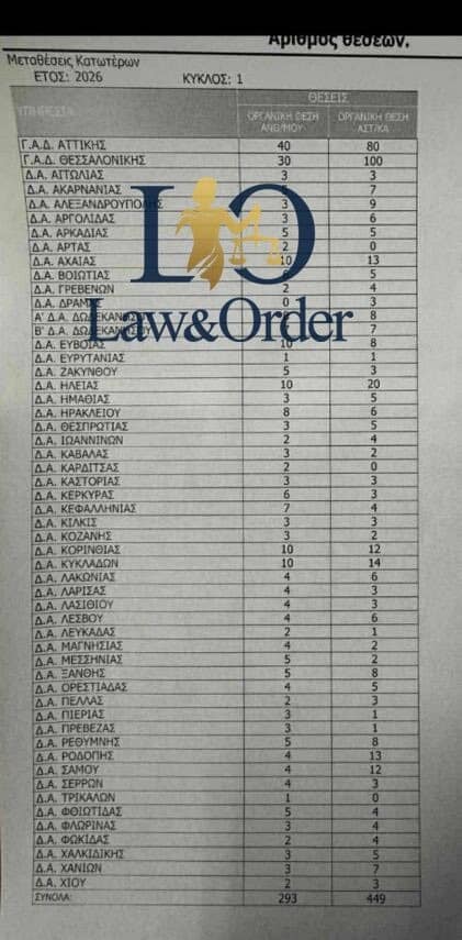 Εκδόθηκαν οι θέσεις των Αστυνομικών για τις Τακτικές Μεταθέσεις του 2026.