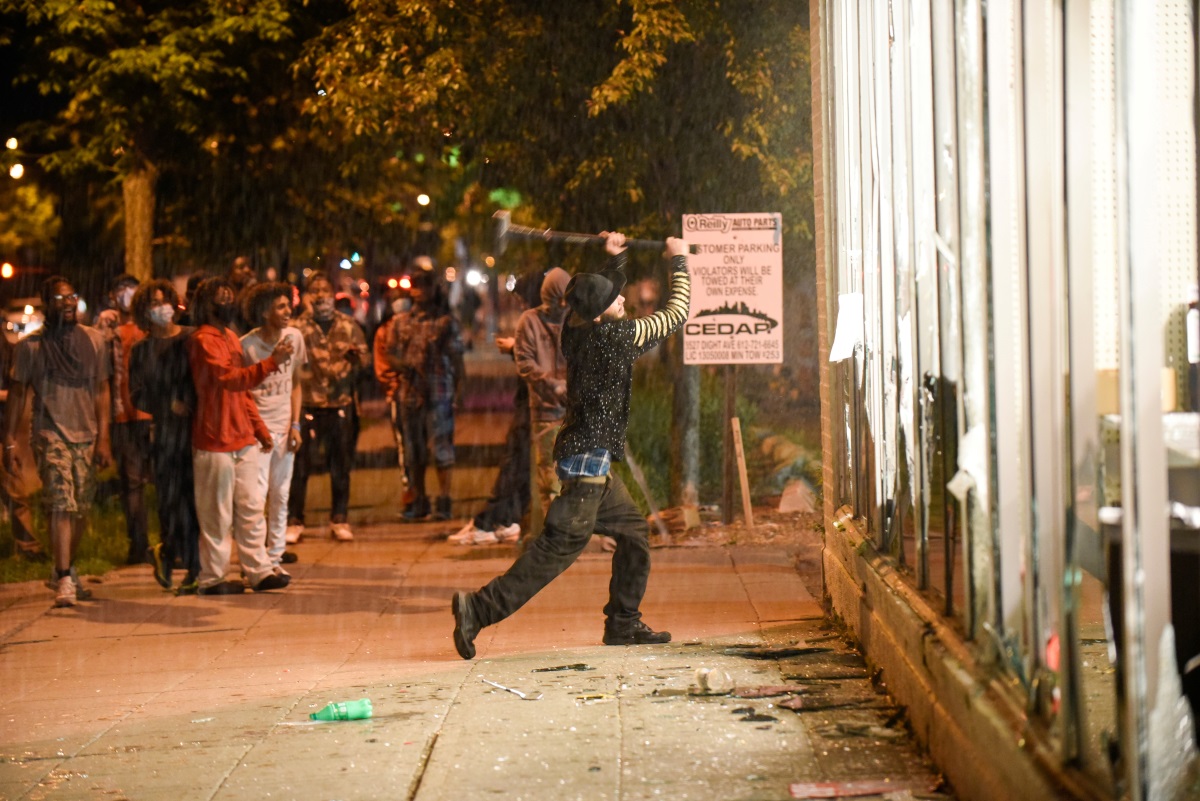 Κατά τη δεύτερη ημέρα των διαδηλώσεων ξέσπασαν ταραχές και σημειώθηκαν λεηλασίες, λίγες ώρες αφού ο δήμαρχος της Μινεάπολης Τζέικομπ Φρέι ζήτησε από τους εισαγγελείς να ασκήσουν δίωξη εναντίον του λευκού αστυνομικού που φαίνεται να κρατά με τη βία τον Φλόιντ στο έδαφος.
