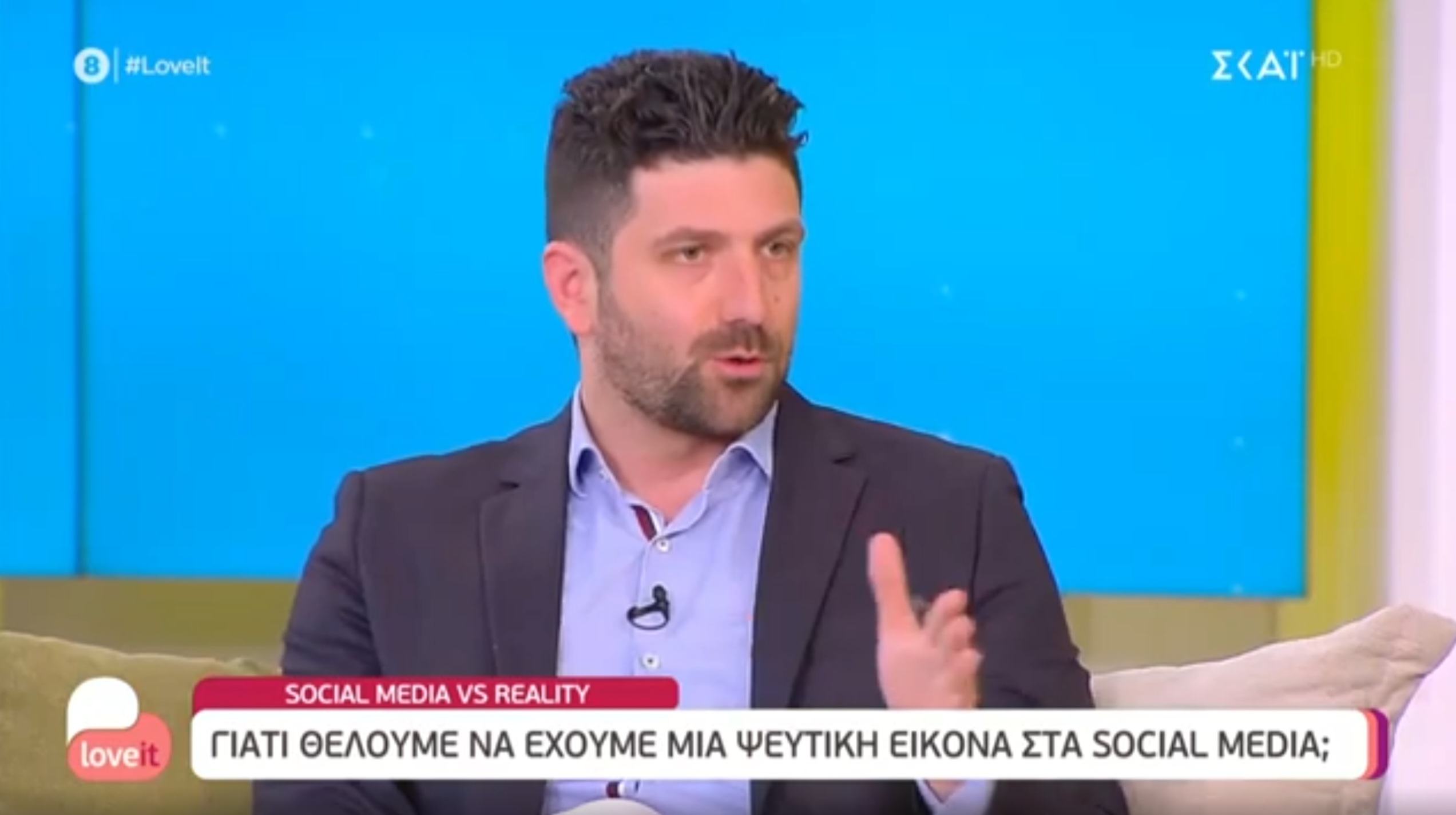 Η Ιωάννα Μαλέσκου υποδέχτηκε στην εκπομπή “love it” του ΣΚΑΙ TV τον Κρητικό ψυχολόγο – ψυχοθεραπευτή Εμμανουήλ Καργάκη. Κύριο θέμα της συζήτησης τους αποτέλεσε το πολύ καίριο ερώτημα “Γιατί θέλουμε να έχουμε μία ψεύτικη εικόνα στα Social Media”;