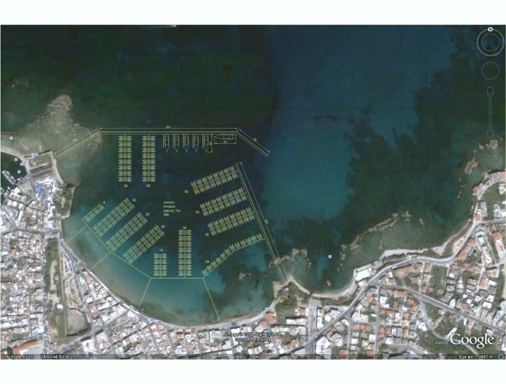 Στην πρόταση ,η χωρητικότητα είναι για 416 σκάφη με μεγάλη δυνατότητα αύξησης των θέσεων εάν το βόρειο κρηπίδωμα επεκταθεί ανατολικότερα.